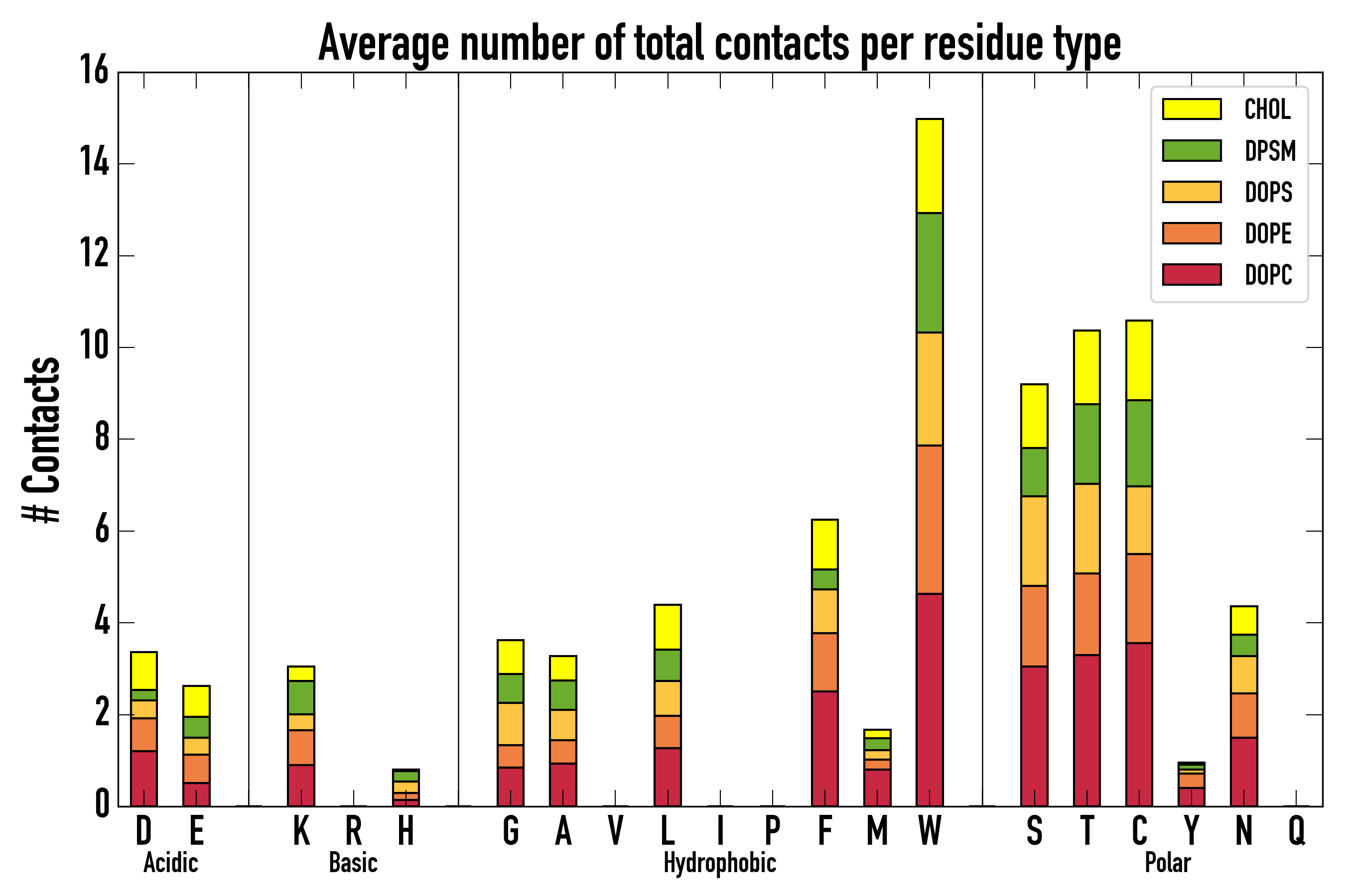 Number of total contacts per residue type:
