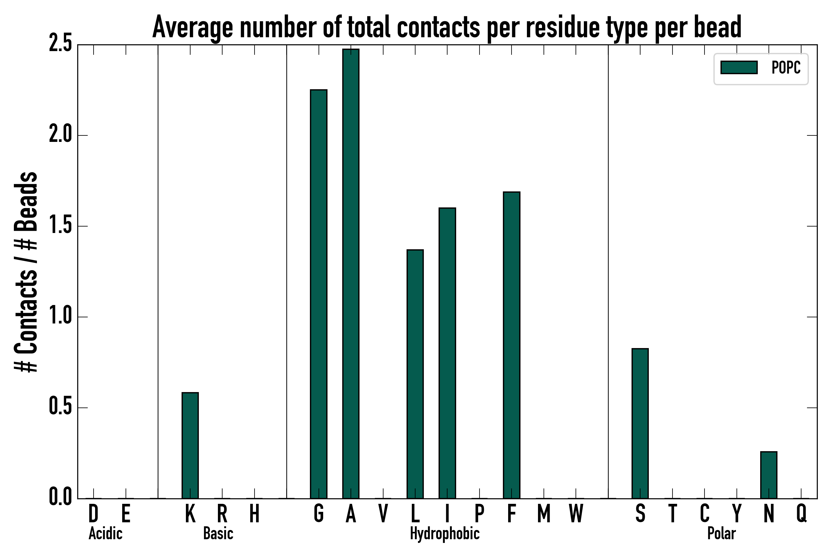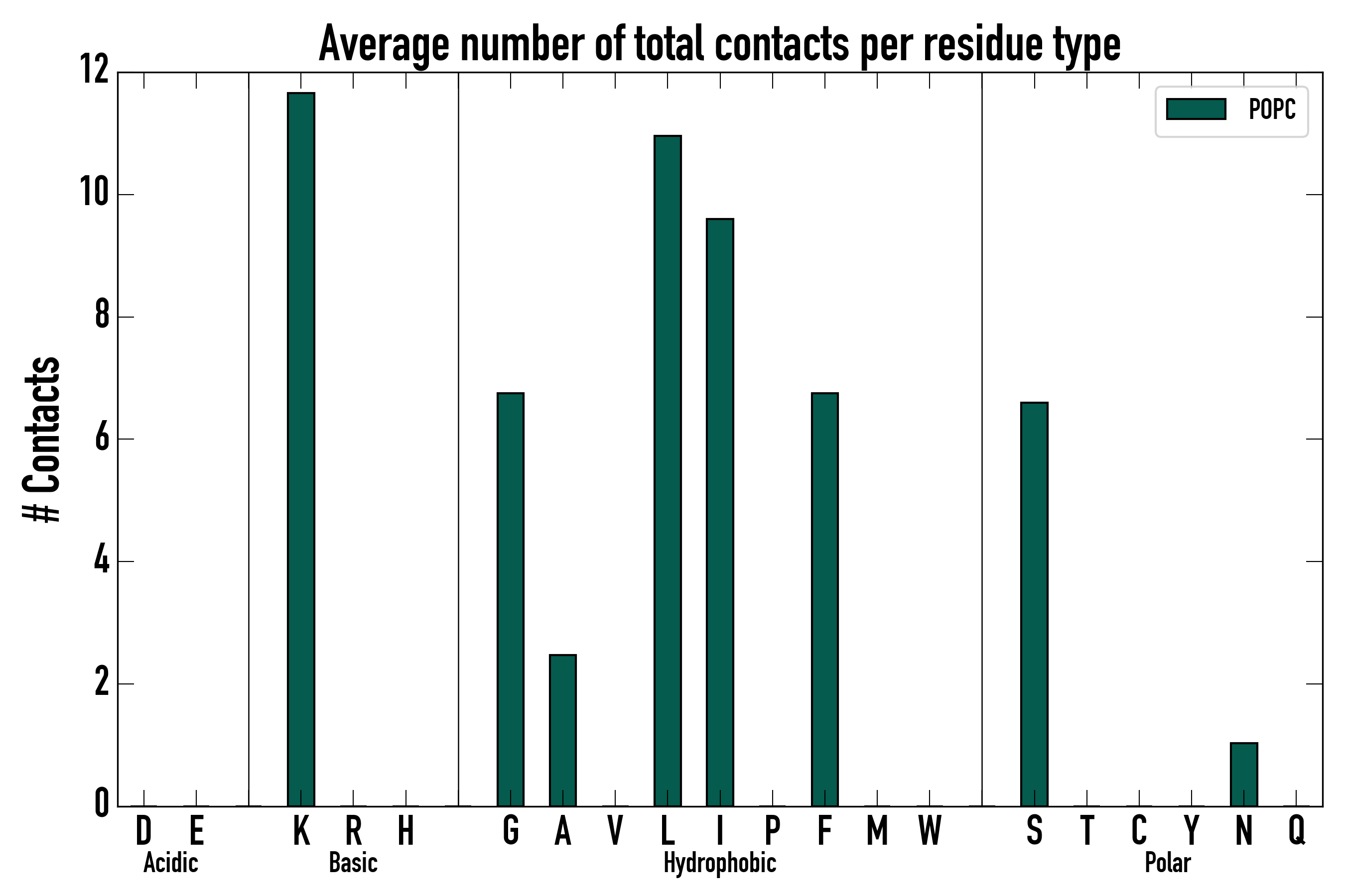 Number of total contacts per residue type: