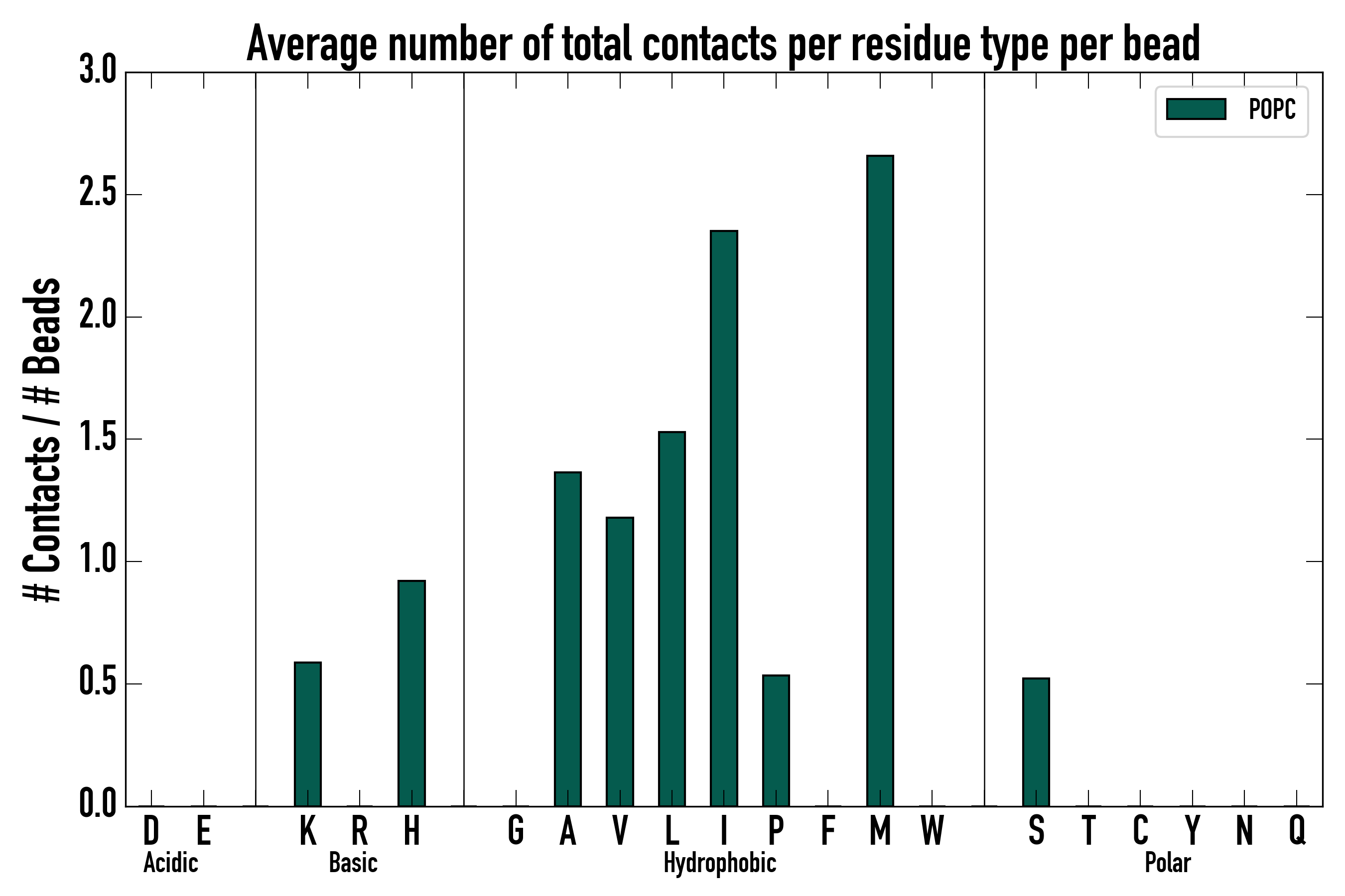 Number of total contacts per residue type: