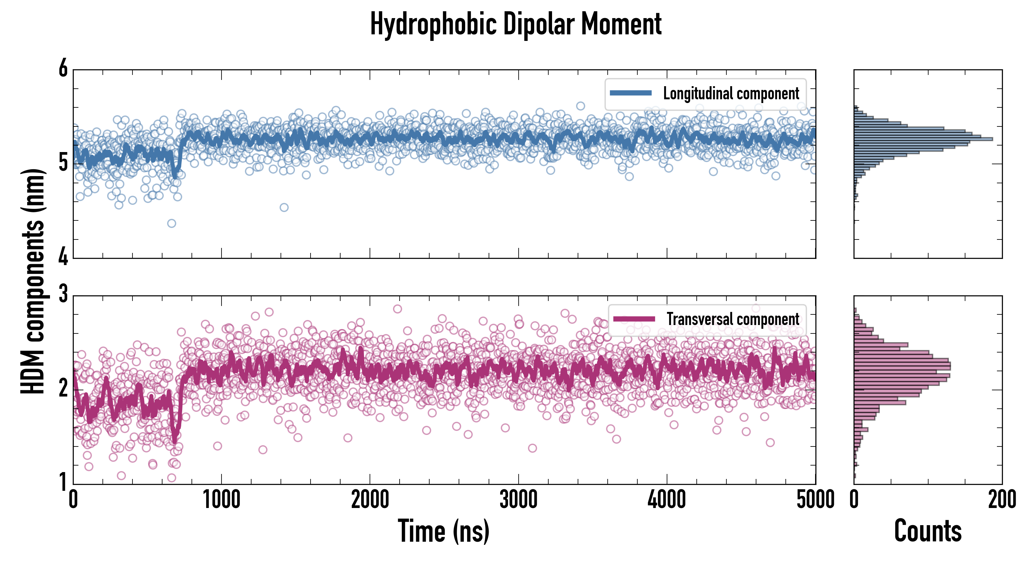 Longitudinal (e nm): 2.64 Transversal (e nm): 0.71 Hydrophobic Dipolar Moment (nm): 5.72