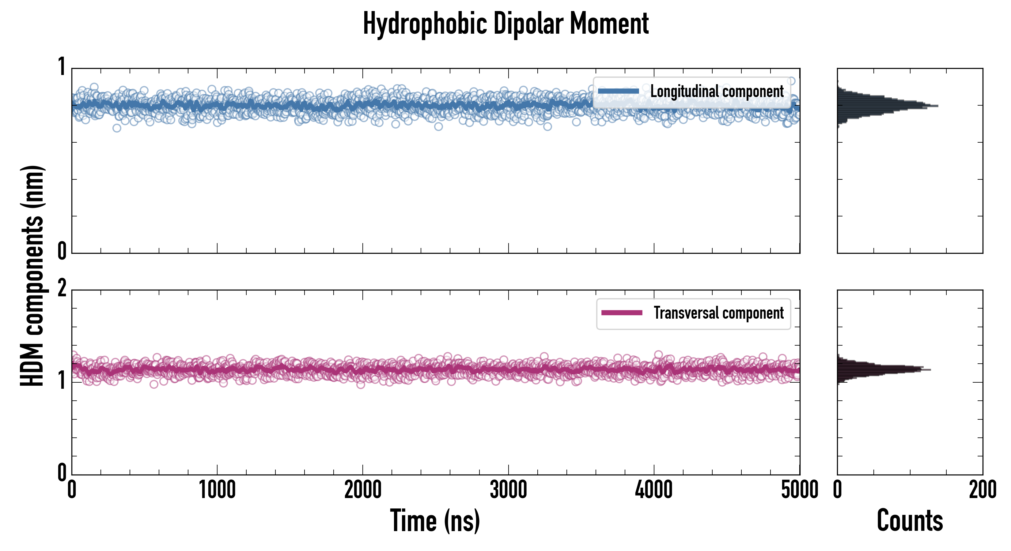 Longitudinal (e nm): 1.74 Transversal (e nm): 0.01 Hydrophobic Dipolar Moment (nm): 1.36