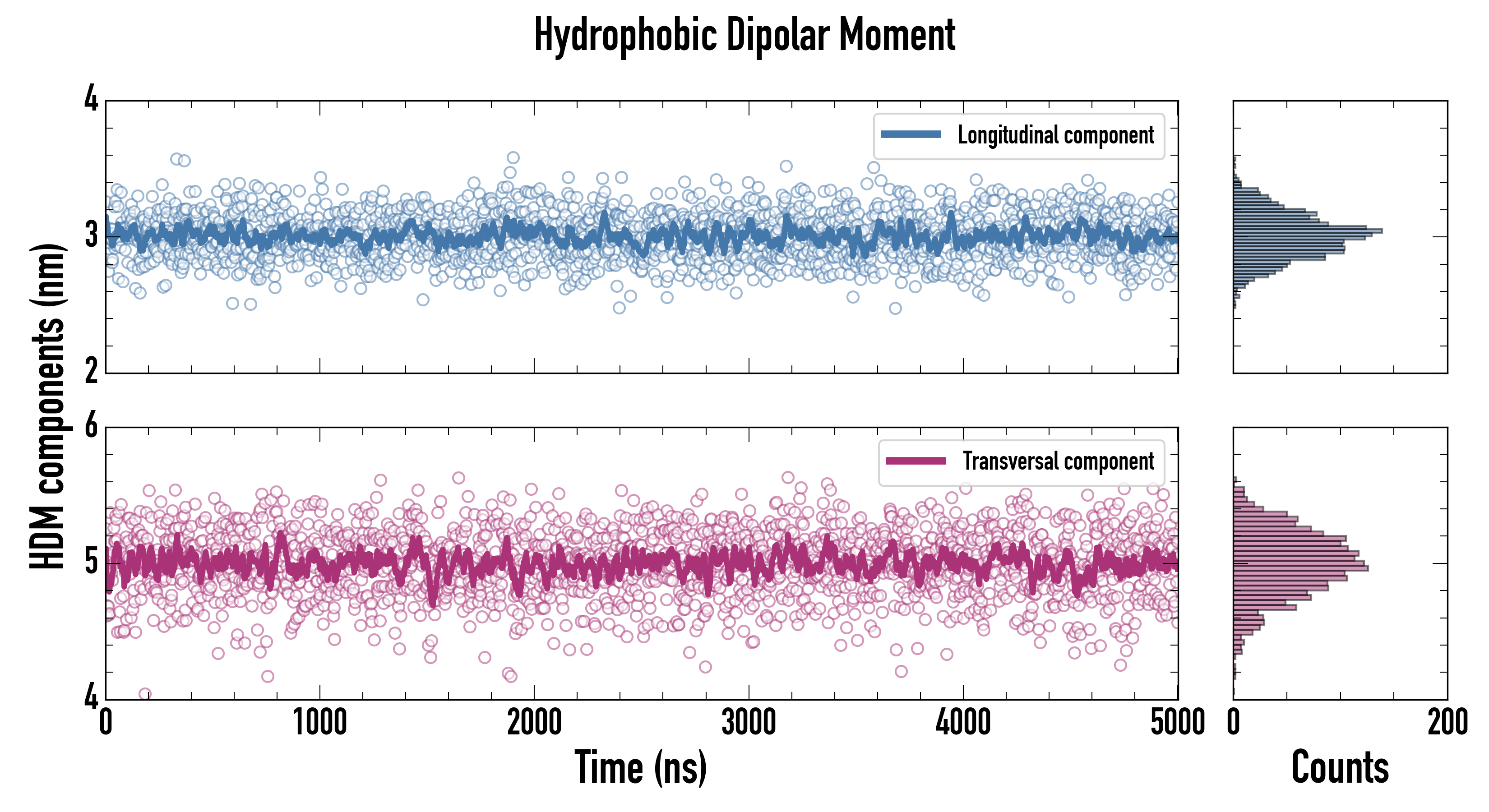 Longitudinal (e nm): 3.34 Transversal (e nm): 1.08 Hydrophobic Dipolar Moment (nm): 5.25