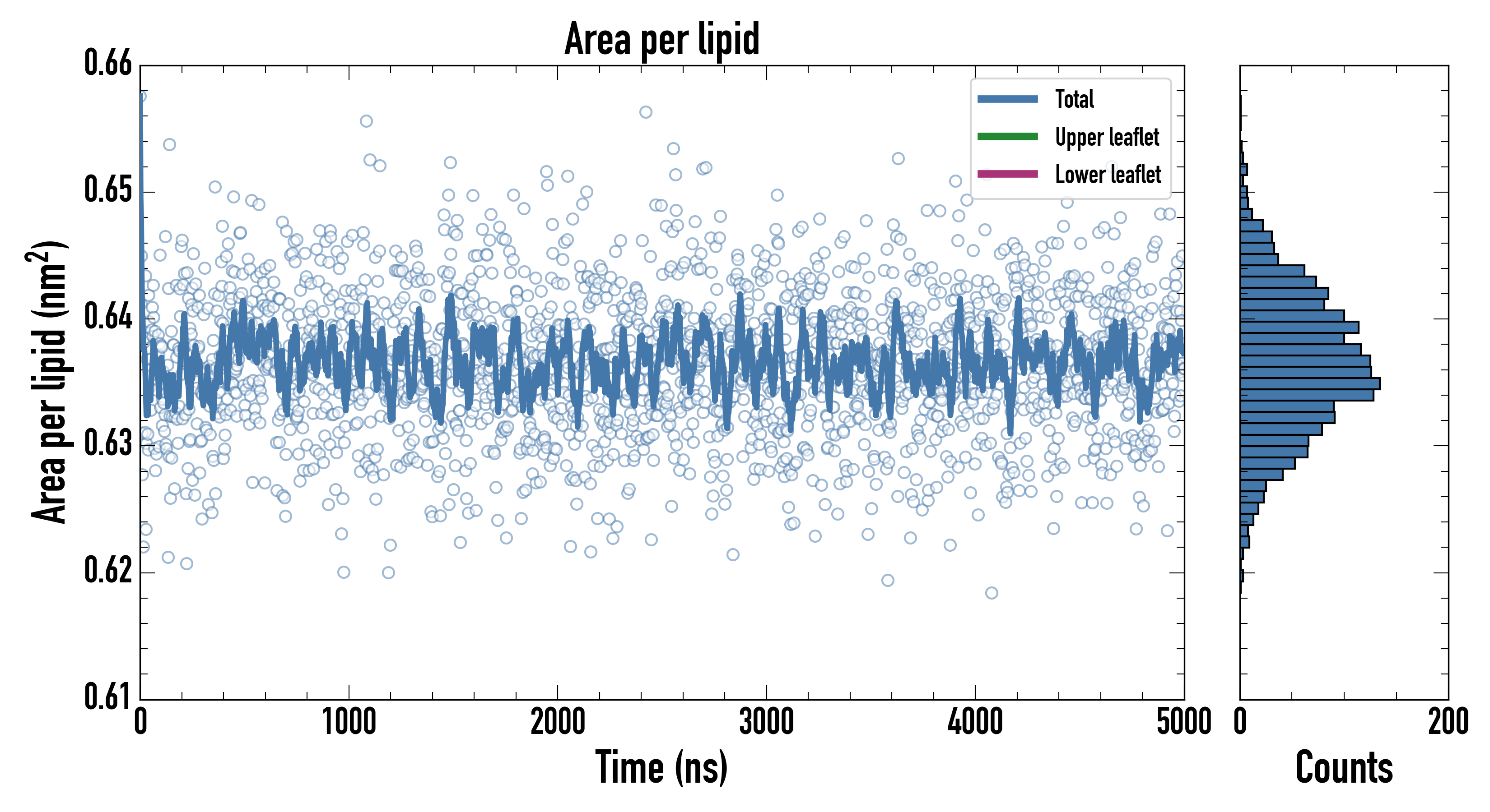Upper leaflet (nm2): 0.636612000 ± 0.000976325