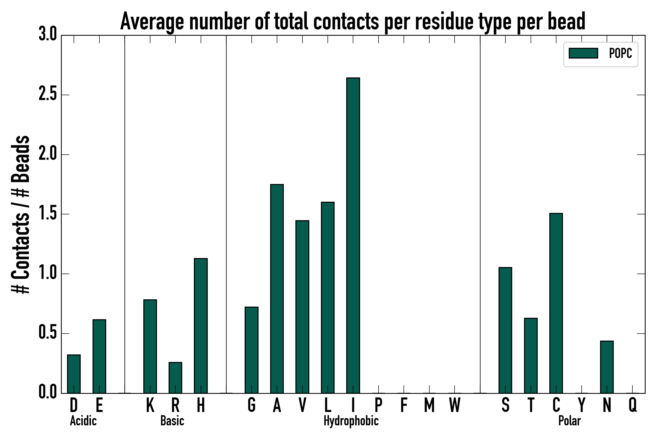 Number of total contacts per residue type:
