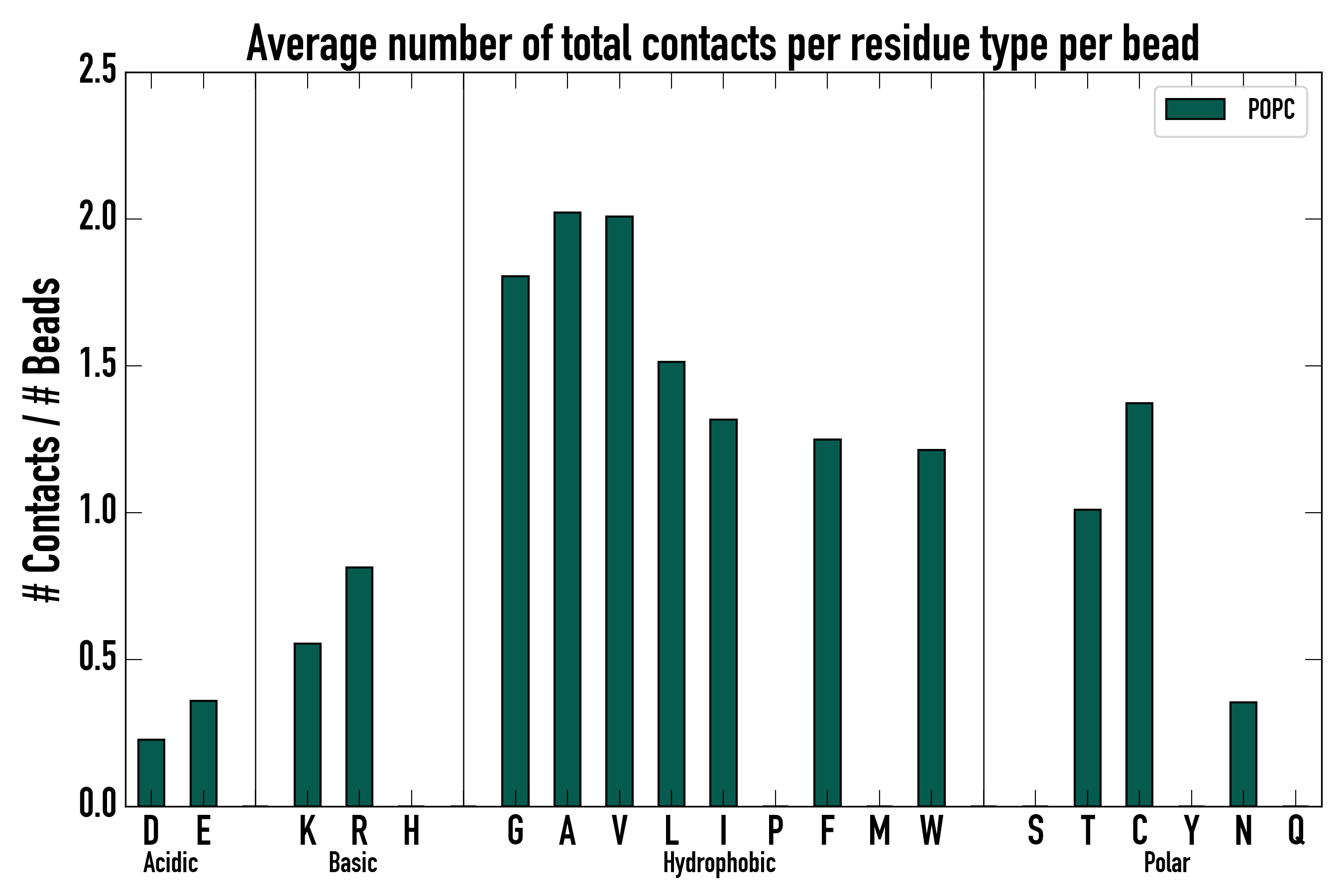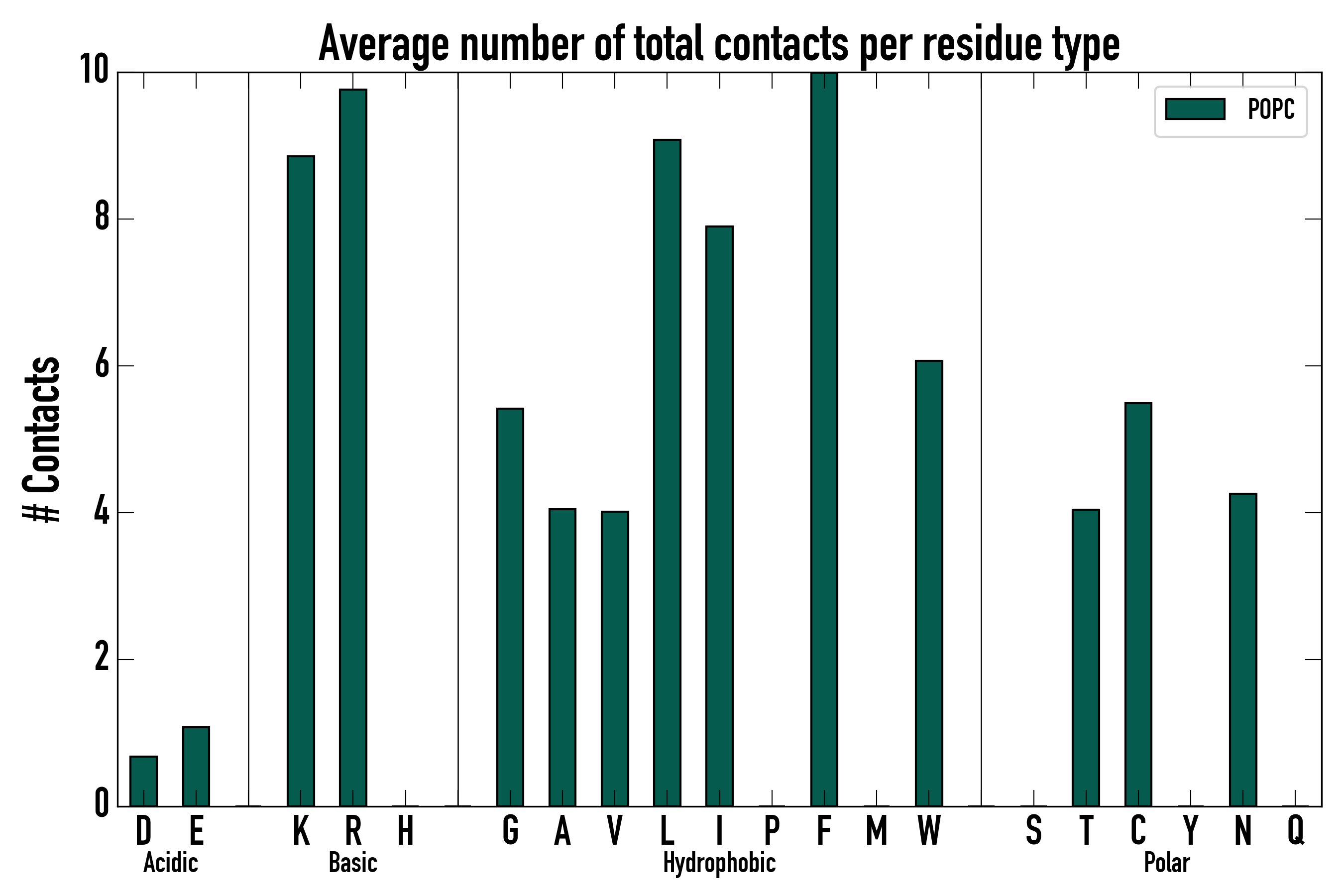 Number of total contacts per residue type: