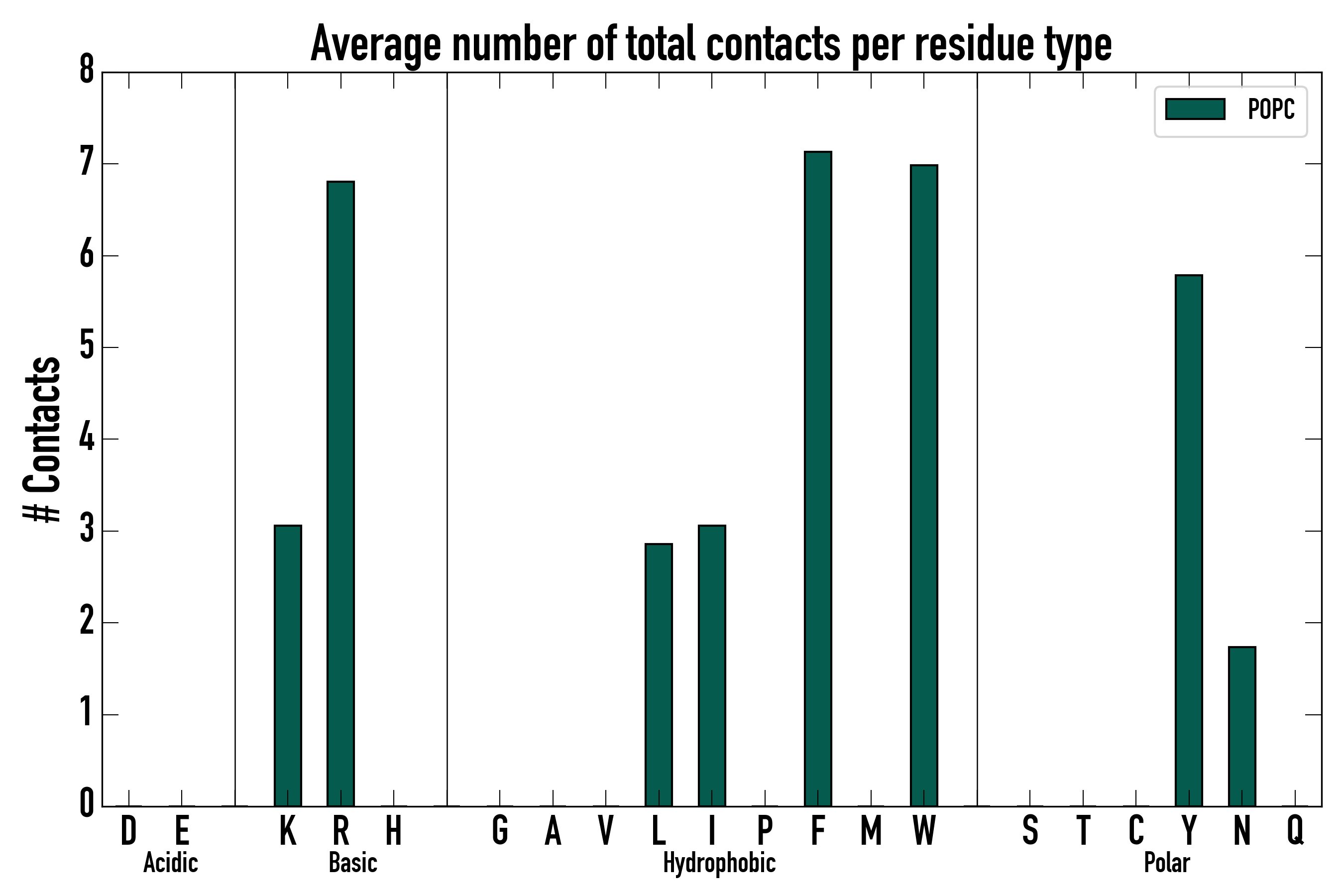 Number of total contacts per residue type: