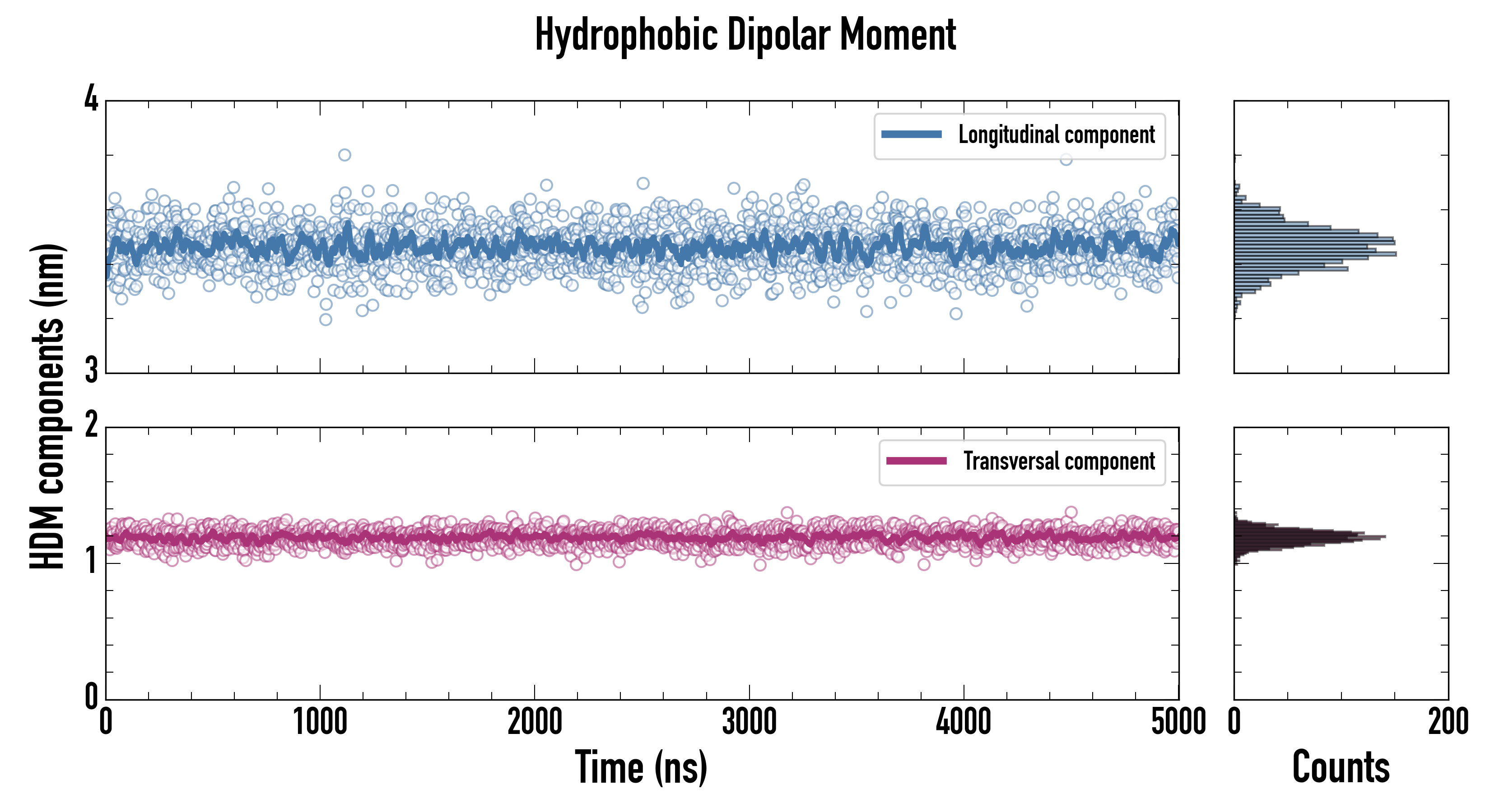 Longitudinal (e nm): 4.46 Transversal (e nm): 1.16 Hydrophobic Dipolar Moment (nm): 3.64