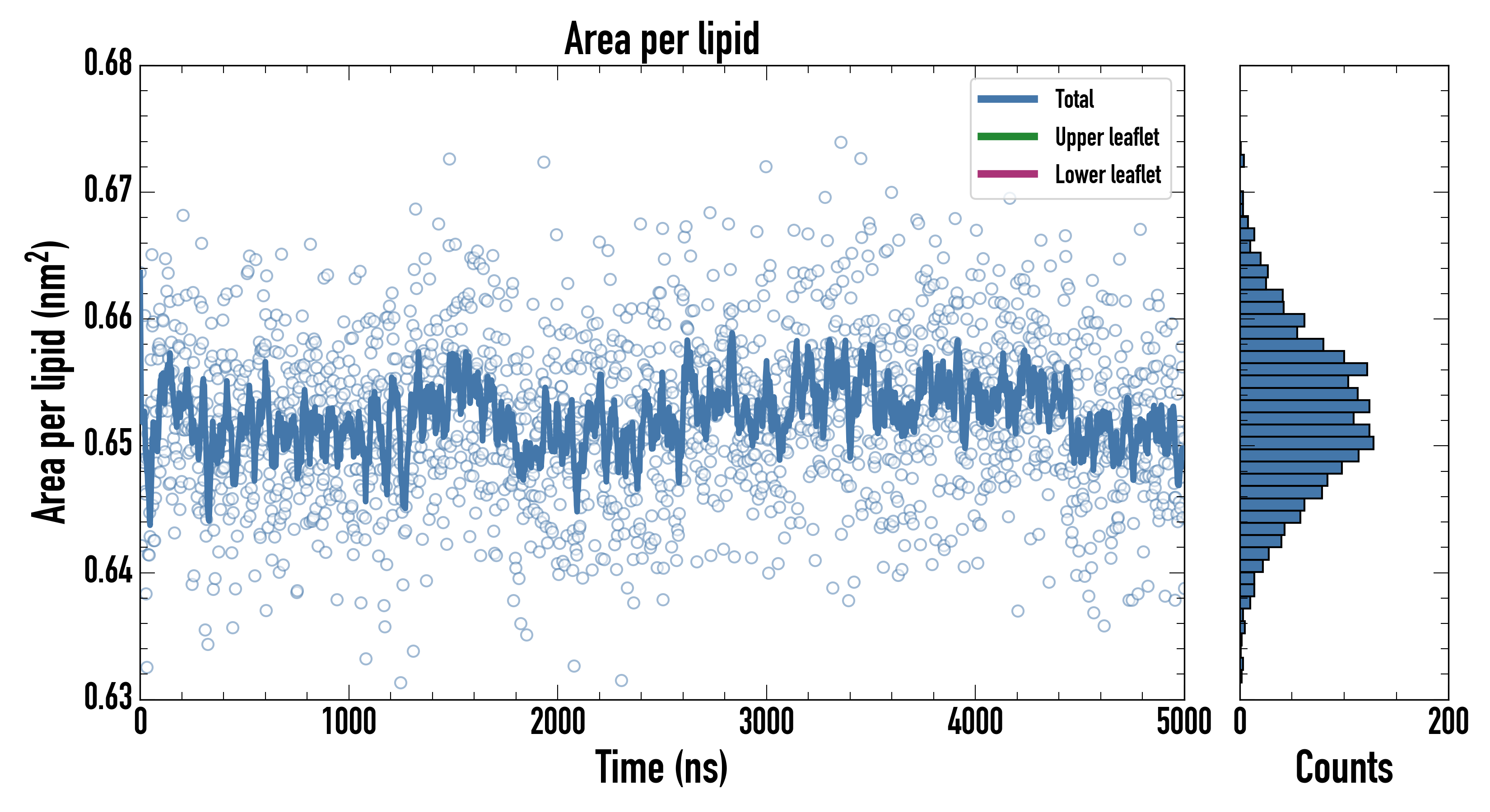 Upper leaflet (nm2): 0.65219600 ± 0.00147179