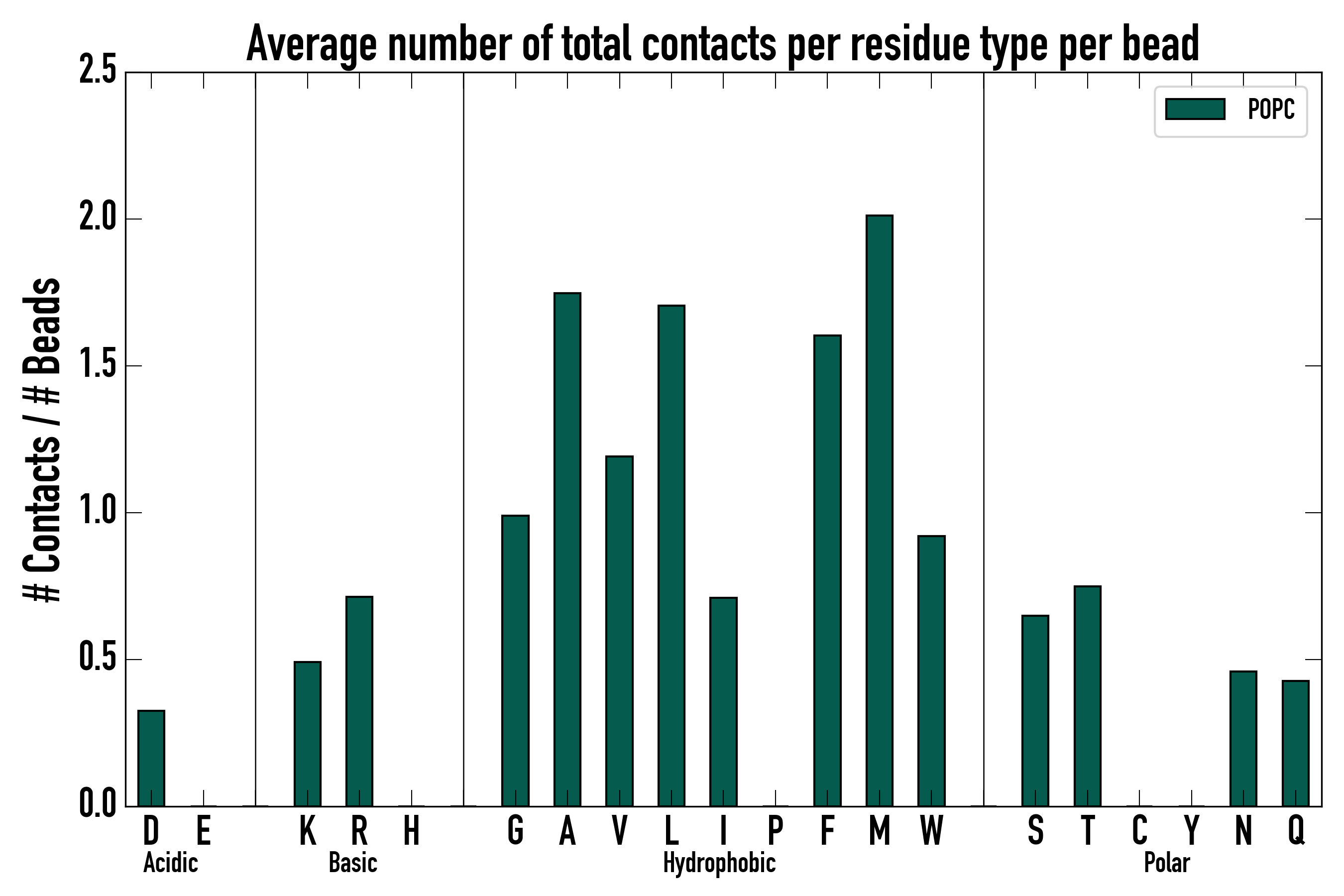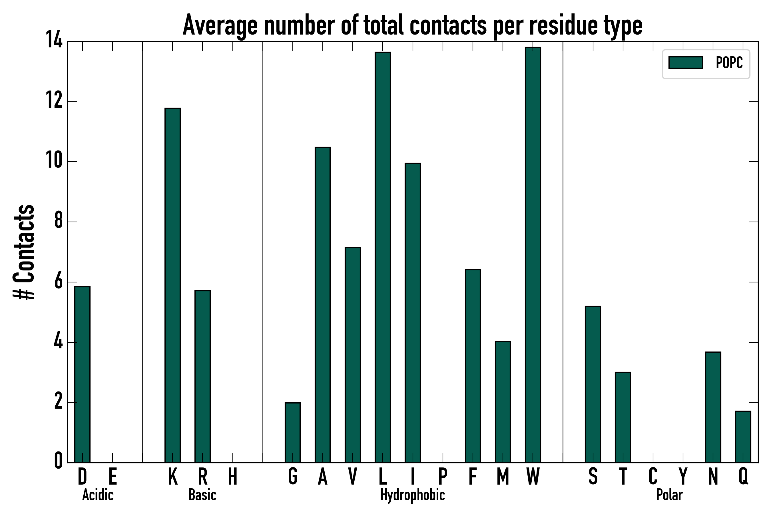 Number of total contacts per residue type: