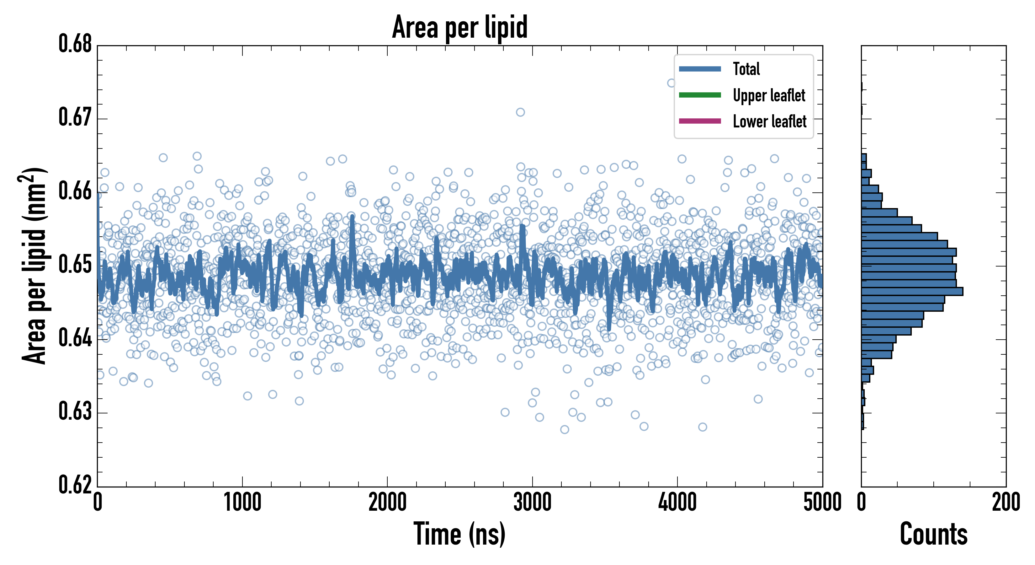Upper leaflet (nm2): 0.64870400 ± 0.00103911