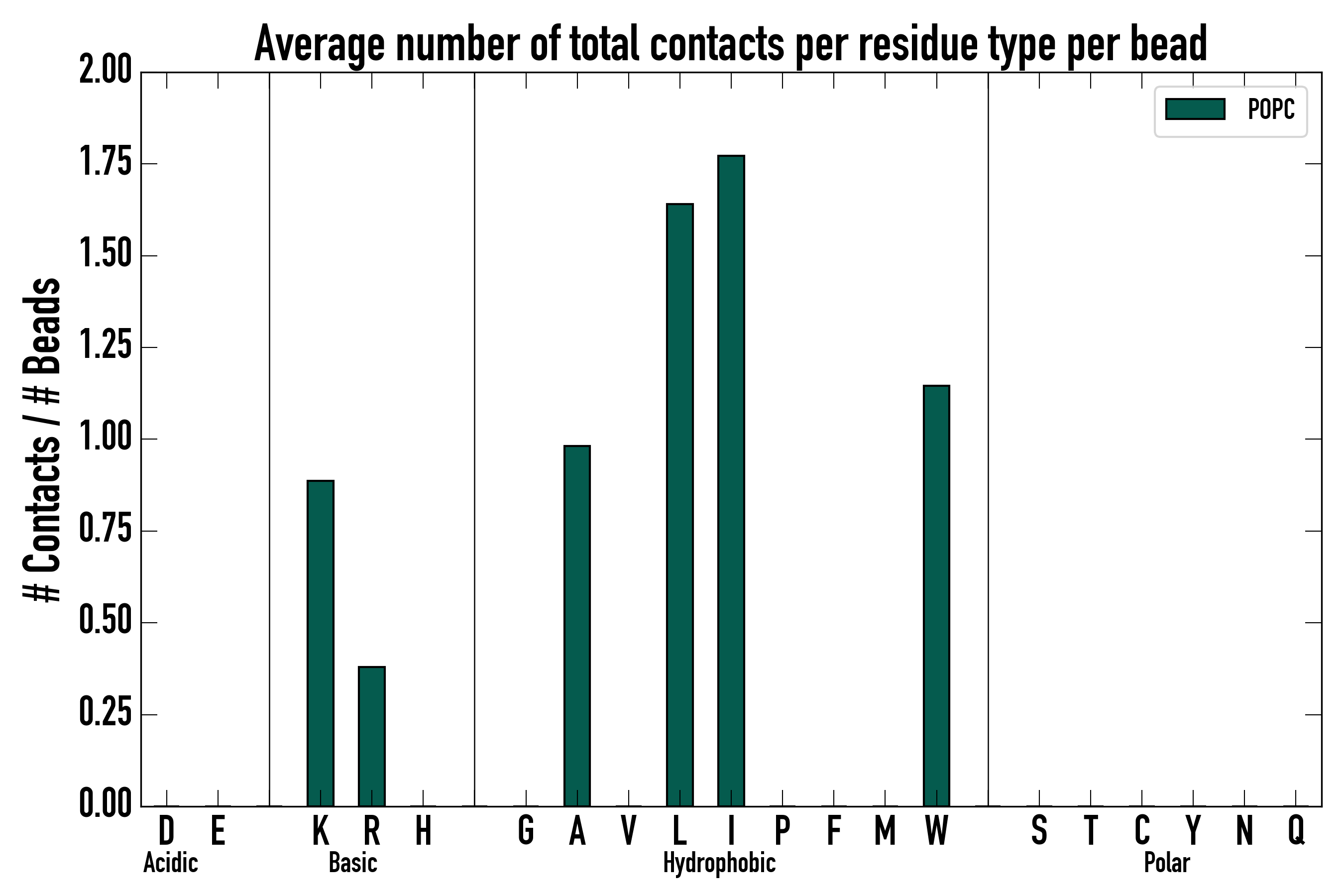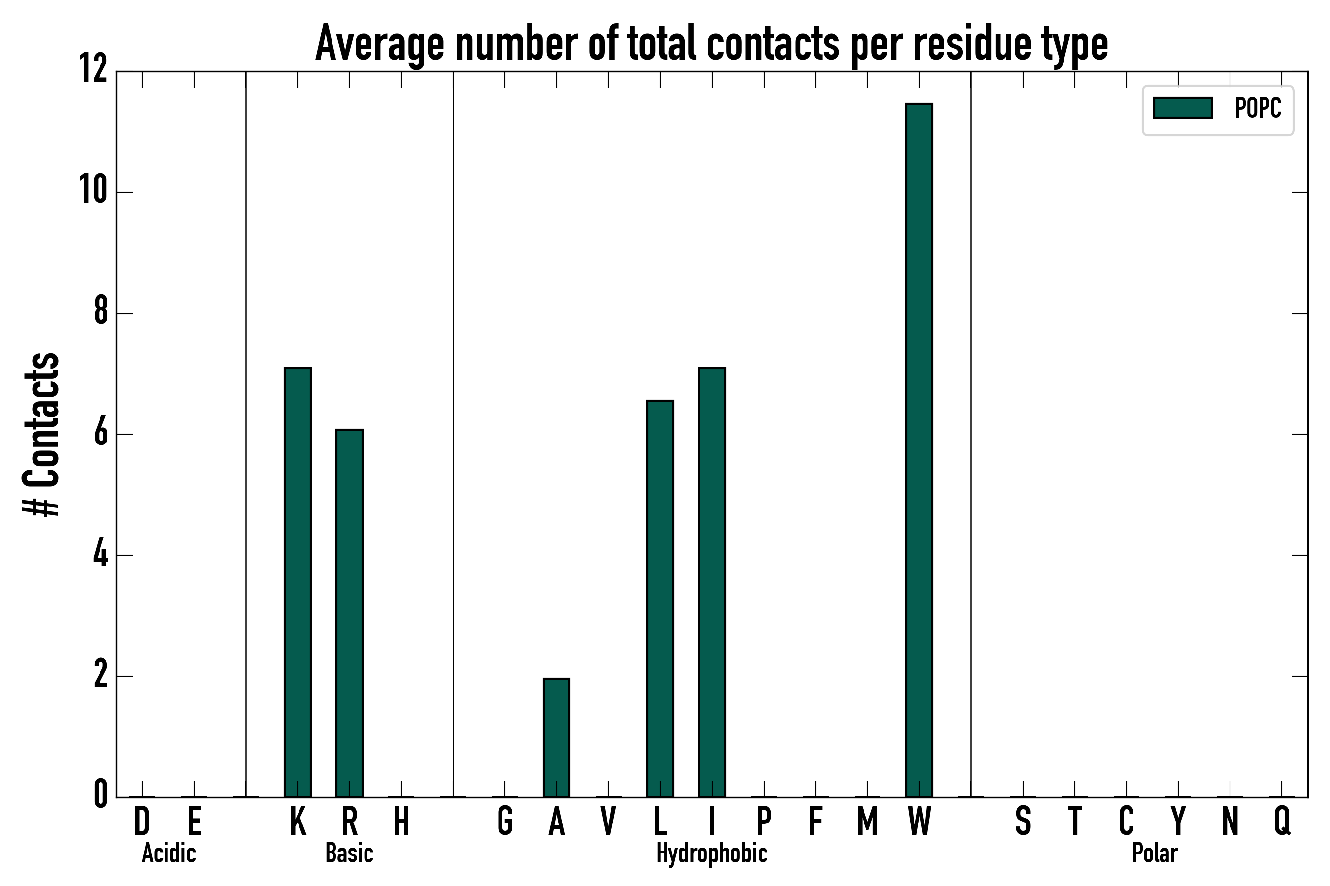 Number of total contacts per residue type: