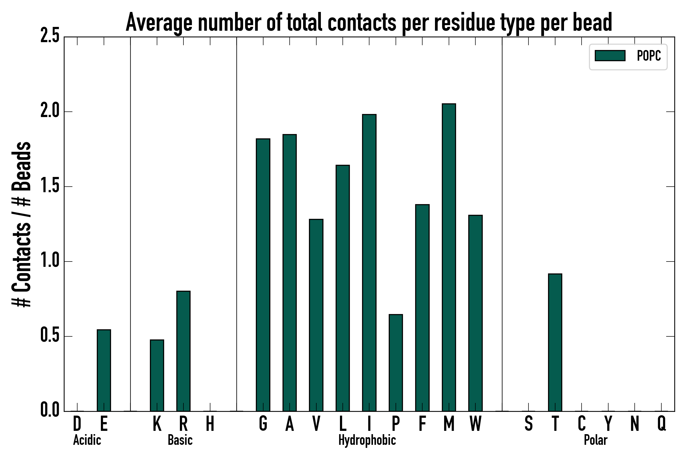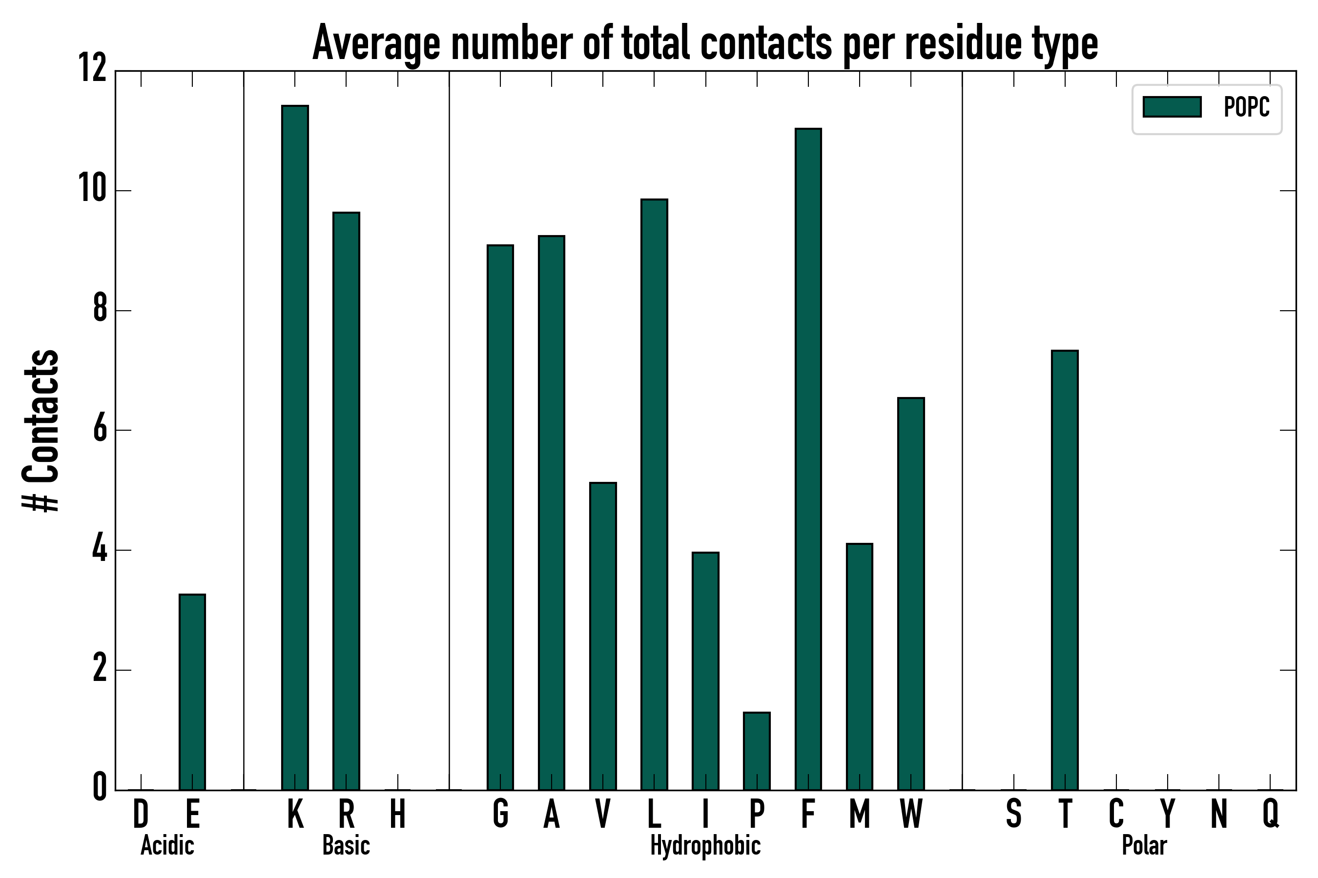 Number of total contacts per residue type: