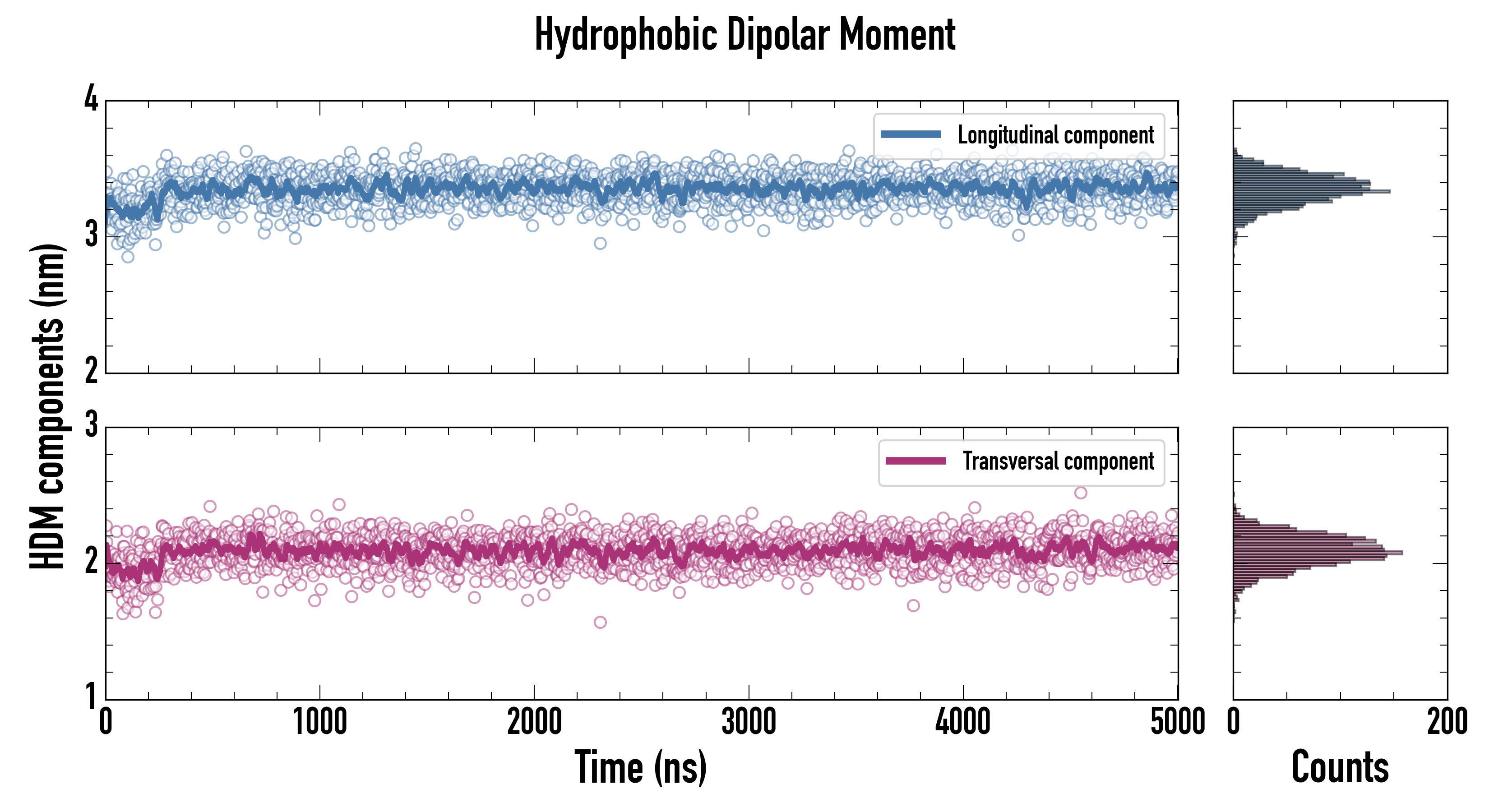 Longitudinal (e nm): 8.35 Transversal (e nm): 2.5 Hydrophobic Dipolar Moment (nm): 3.8