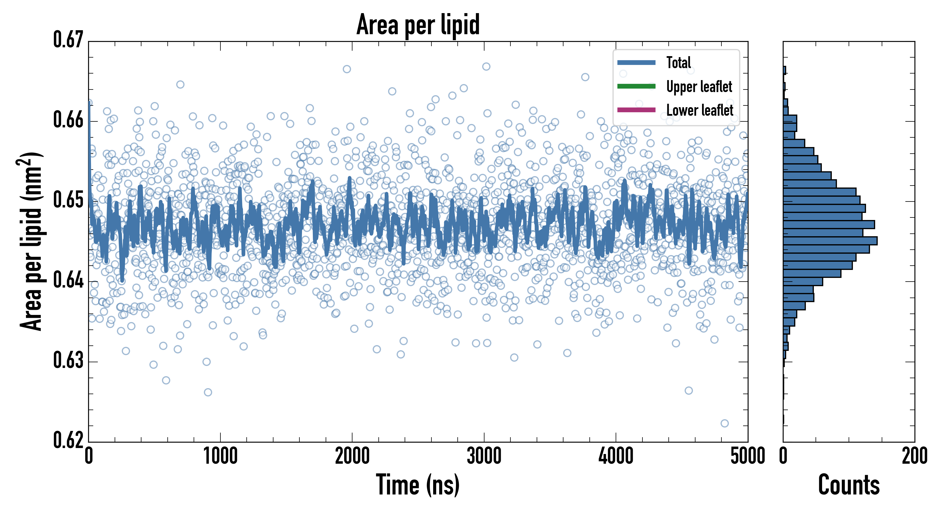Upper leaflet (nm2): 0.64757900 ± 0.00109516