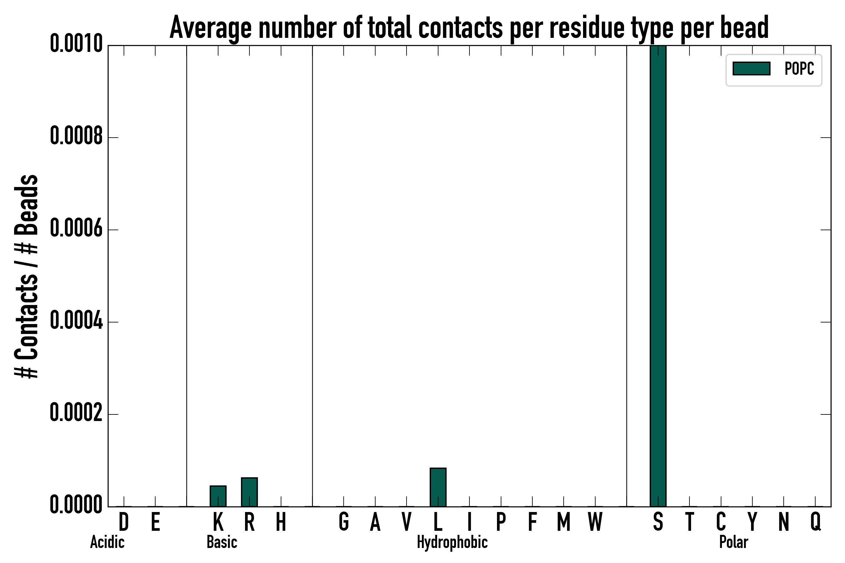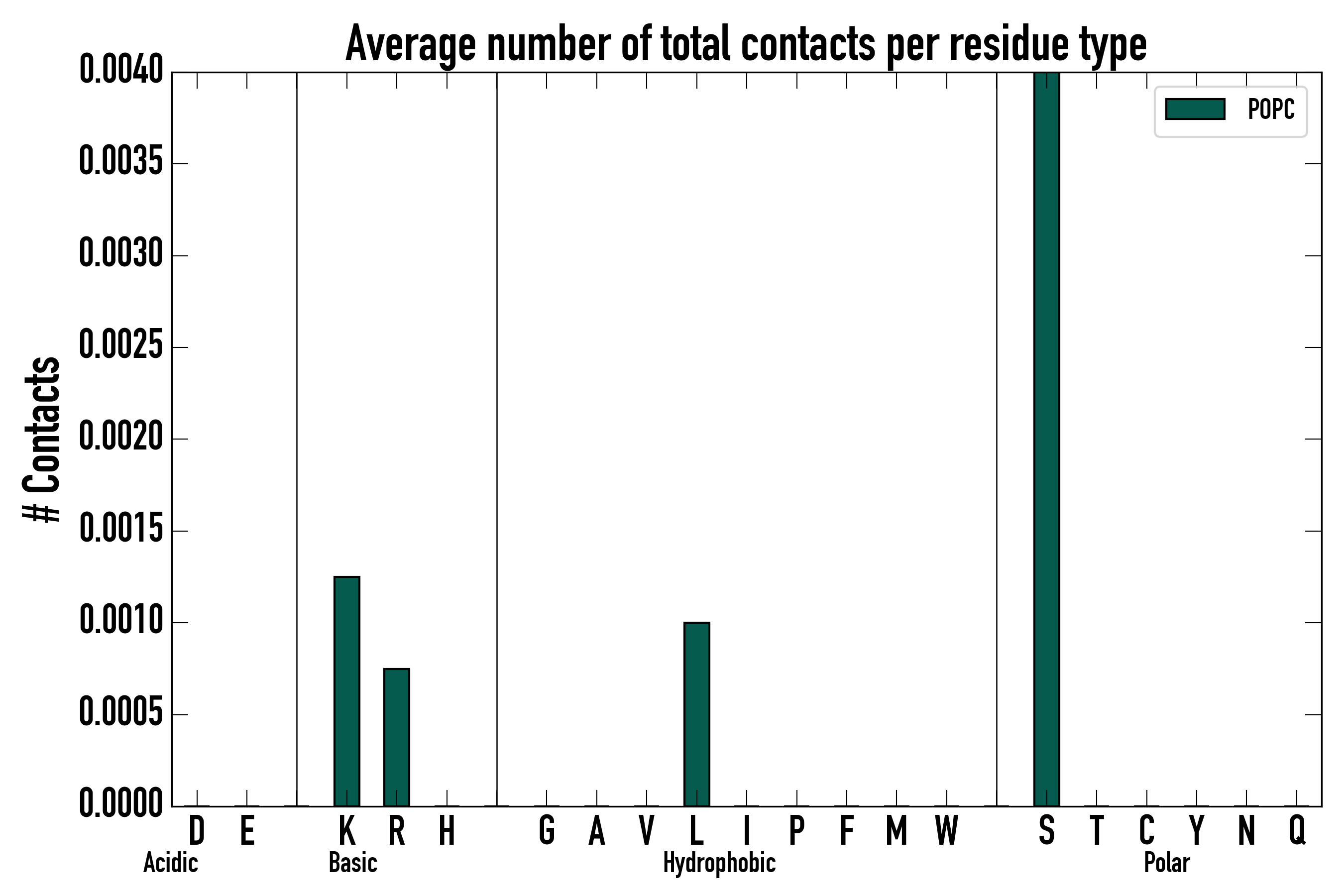 Number of total contacts per residue type: