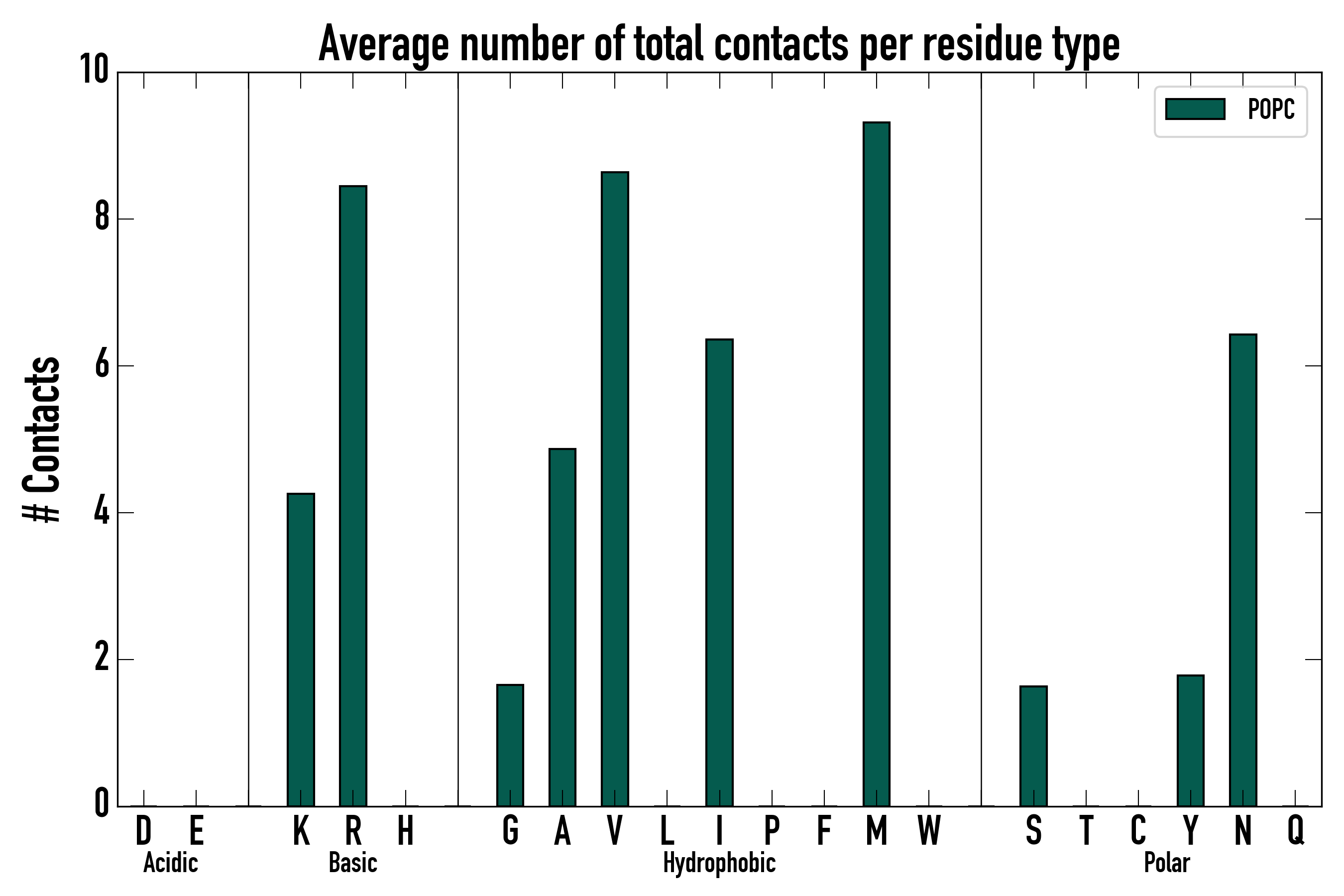 Number of total contacts per residue type: