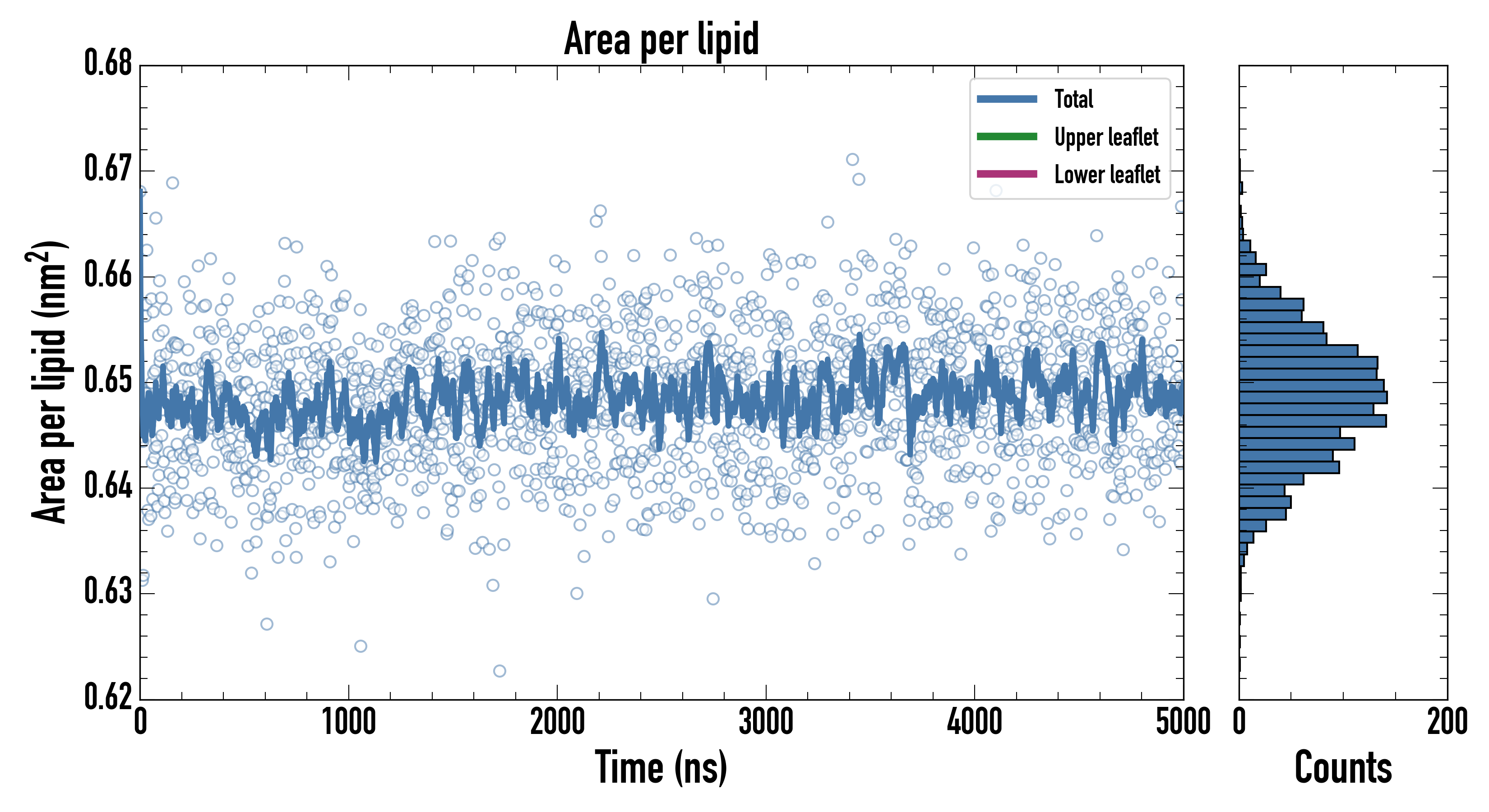 Upper leaflet (nm2): 0.649355000 ± 0.000977653