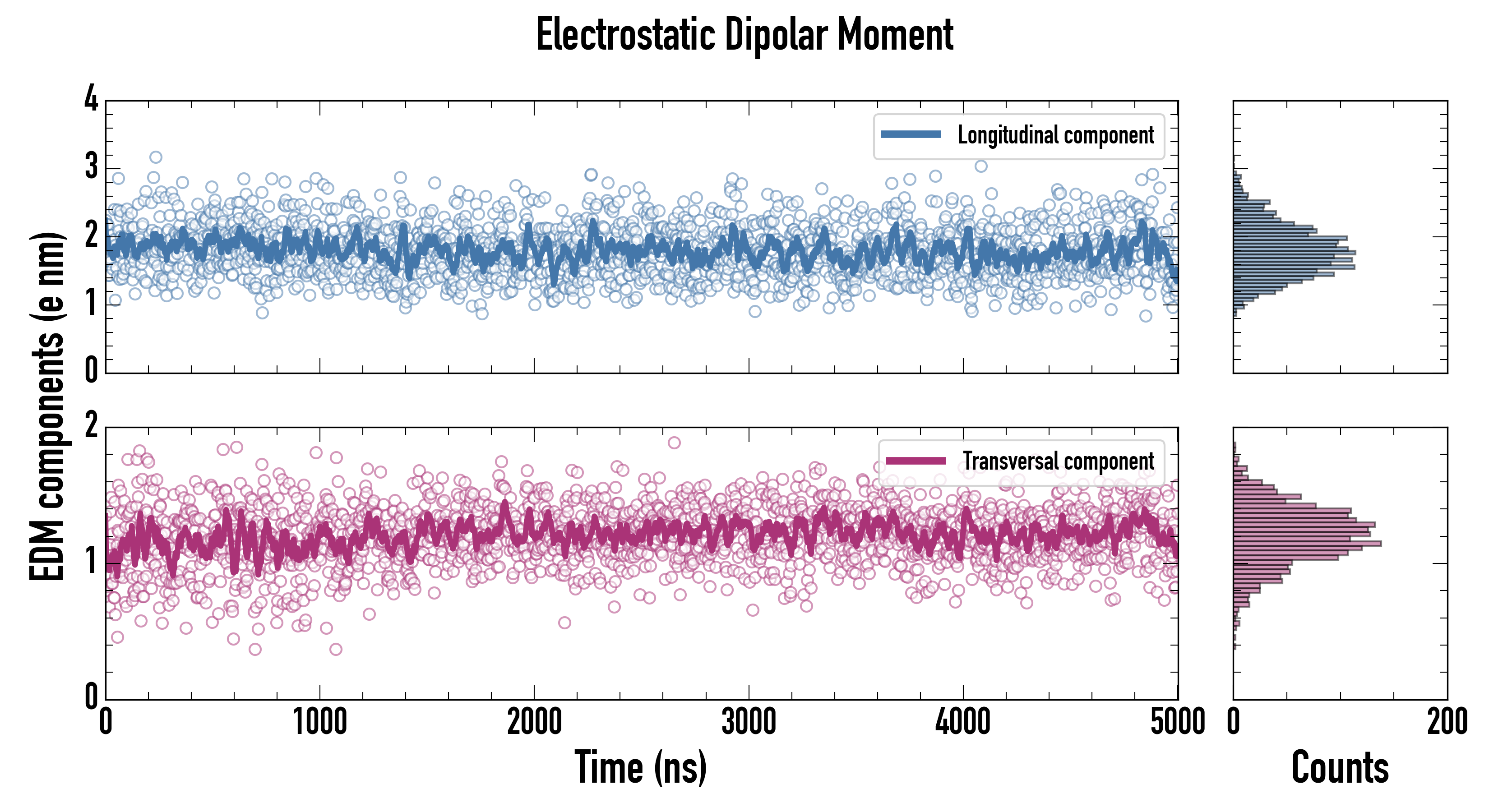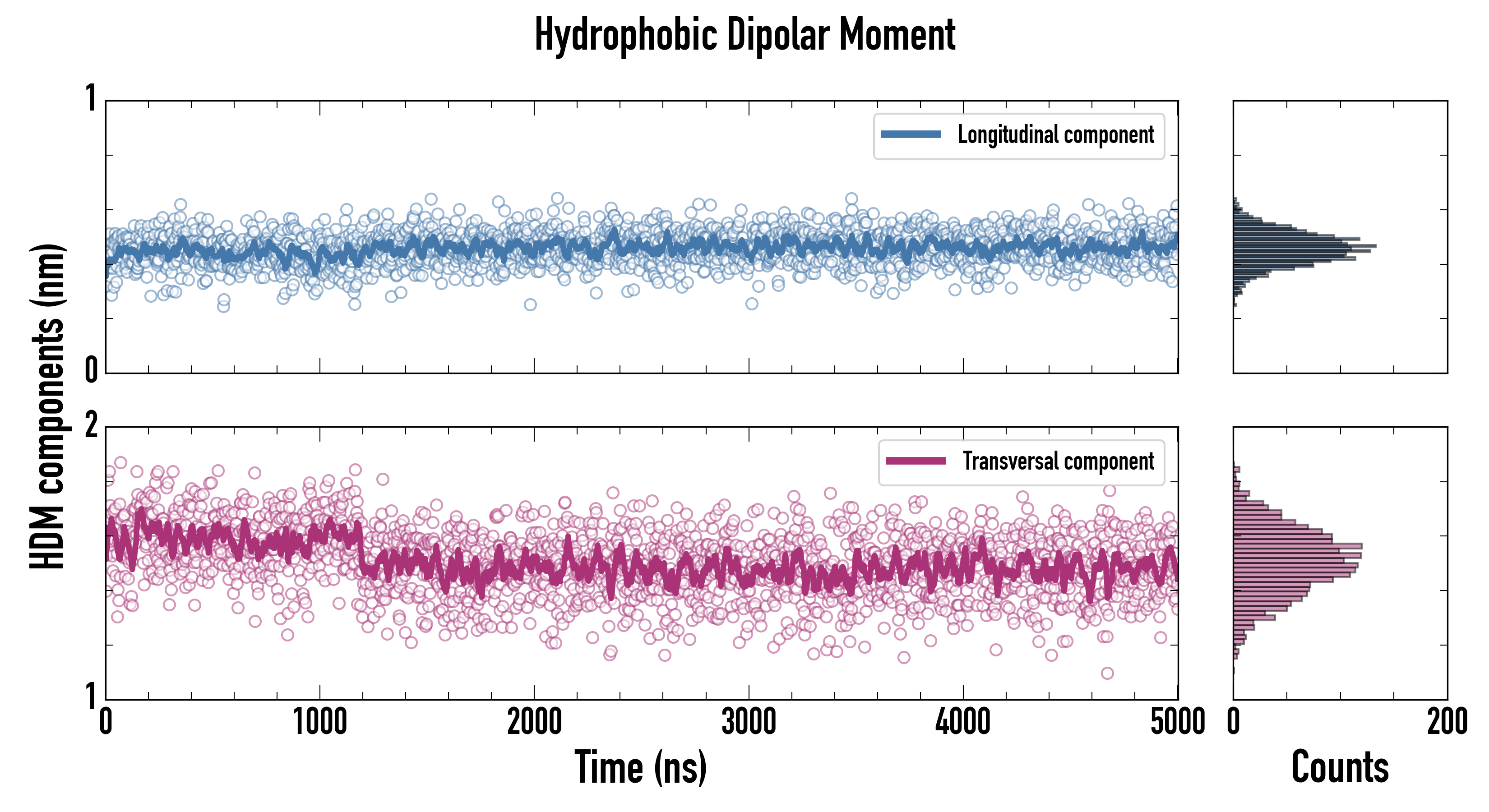 Longitudinal (e nm): 2.98 Transversal (e nm): 1.33 Hydrophobic Dipolar Moment (nm): 1.59