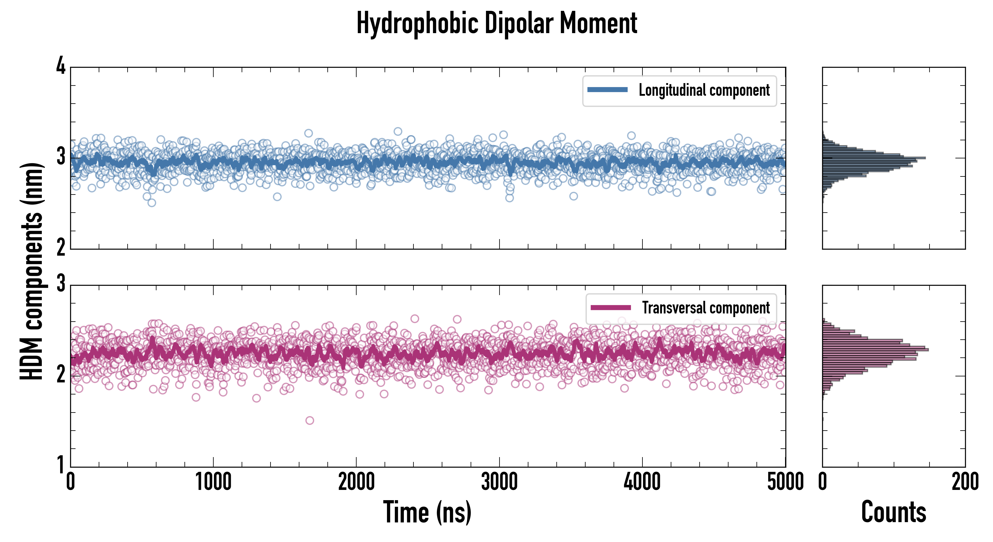 Longitudinal (e nm): 7.67 Transversal (e nm): 0.79 Hydrophobic Dipolar Moment (nm): 3.68