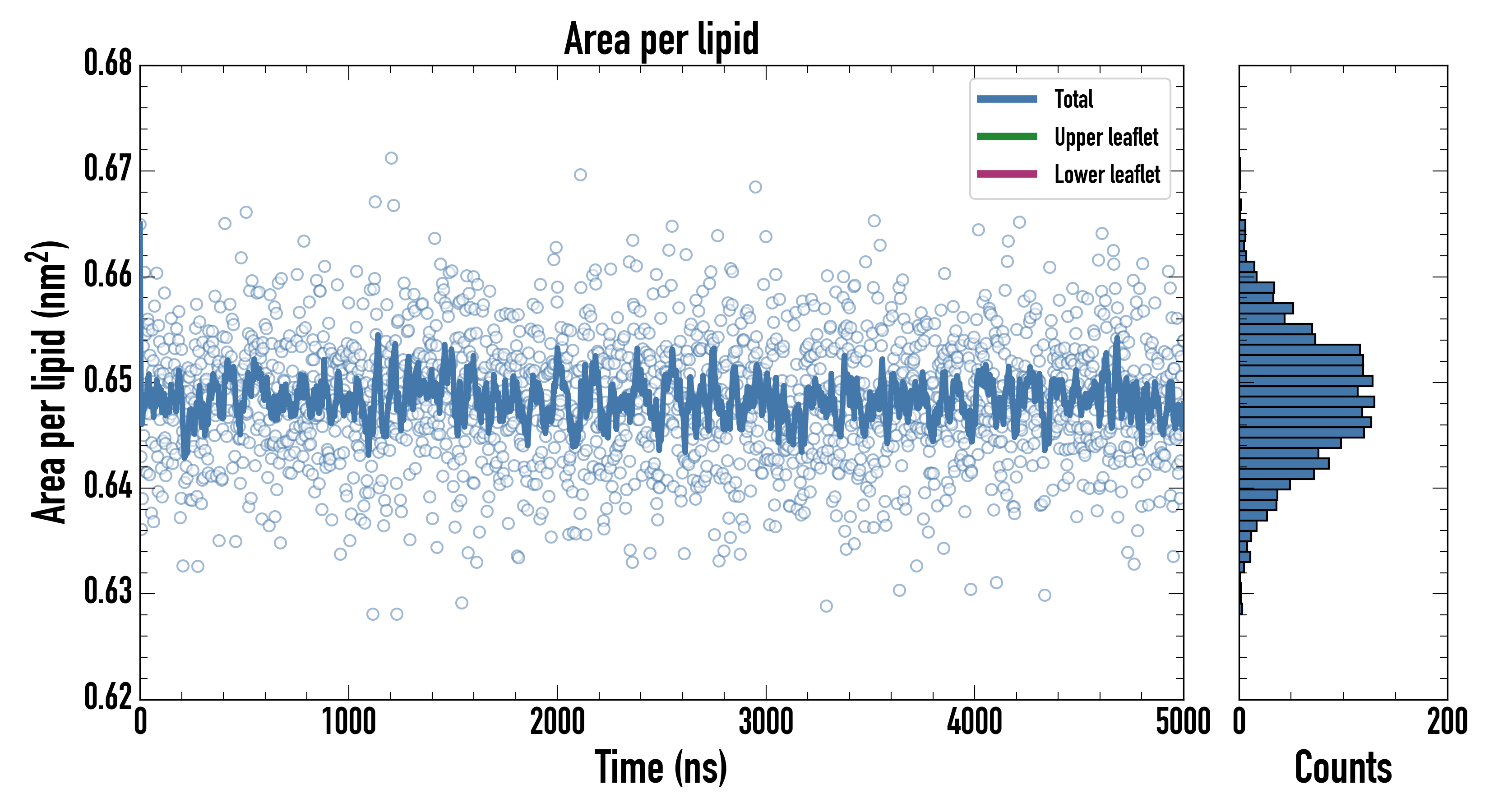 Upper leaflet (nm2): 0.648522000 ± 0.000958919