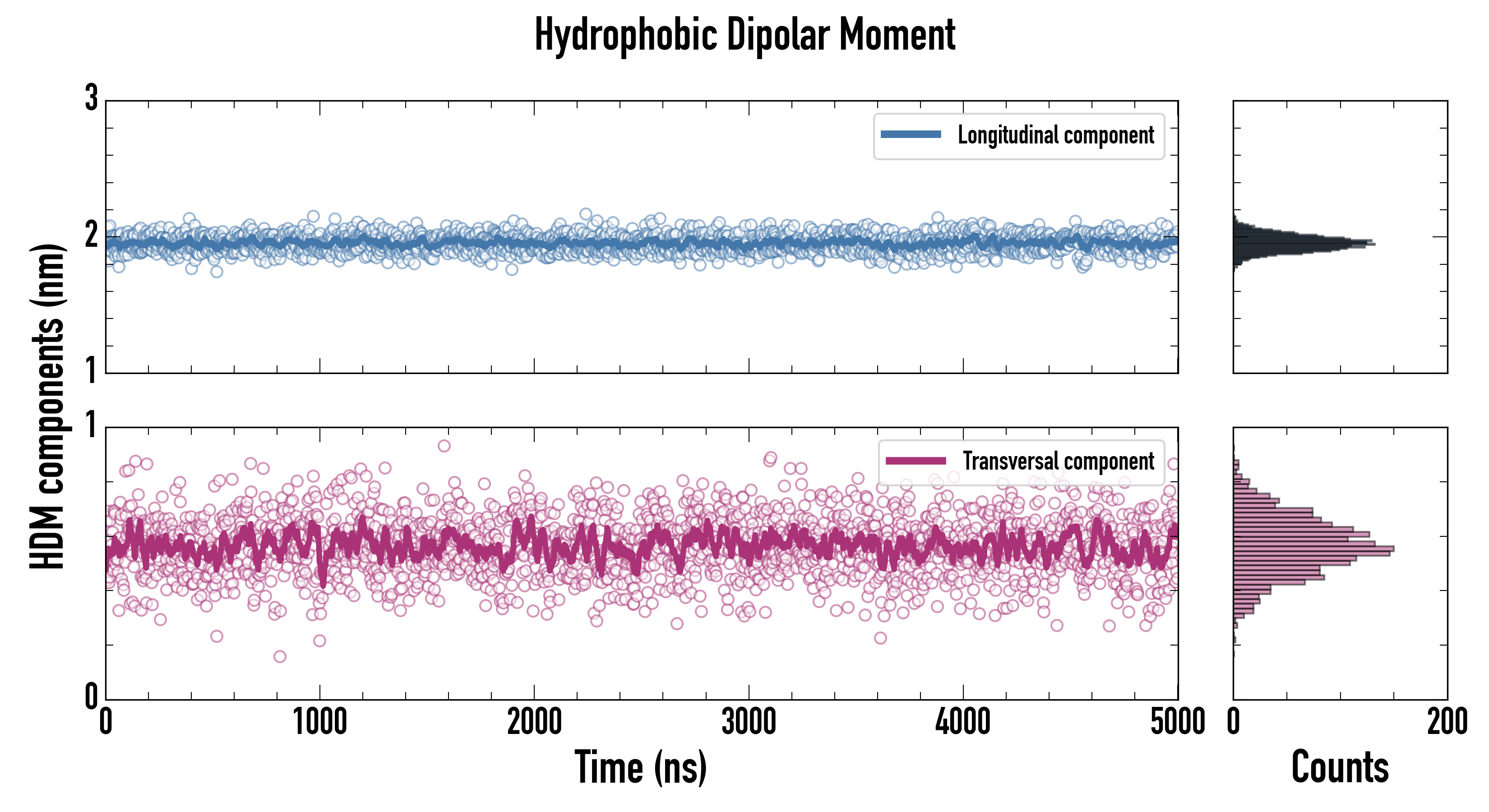 Longitudinal (e nm): 1.22 Transversal (e nm): 0.73 Hydrophobic Dipolar Moment (nm): 1.97