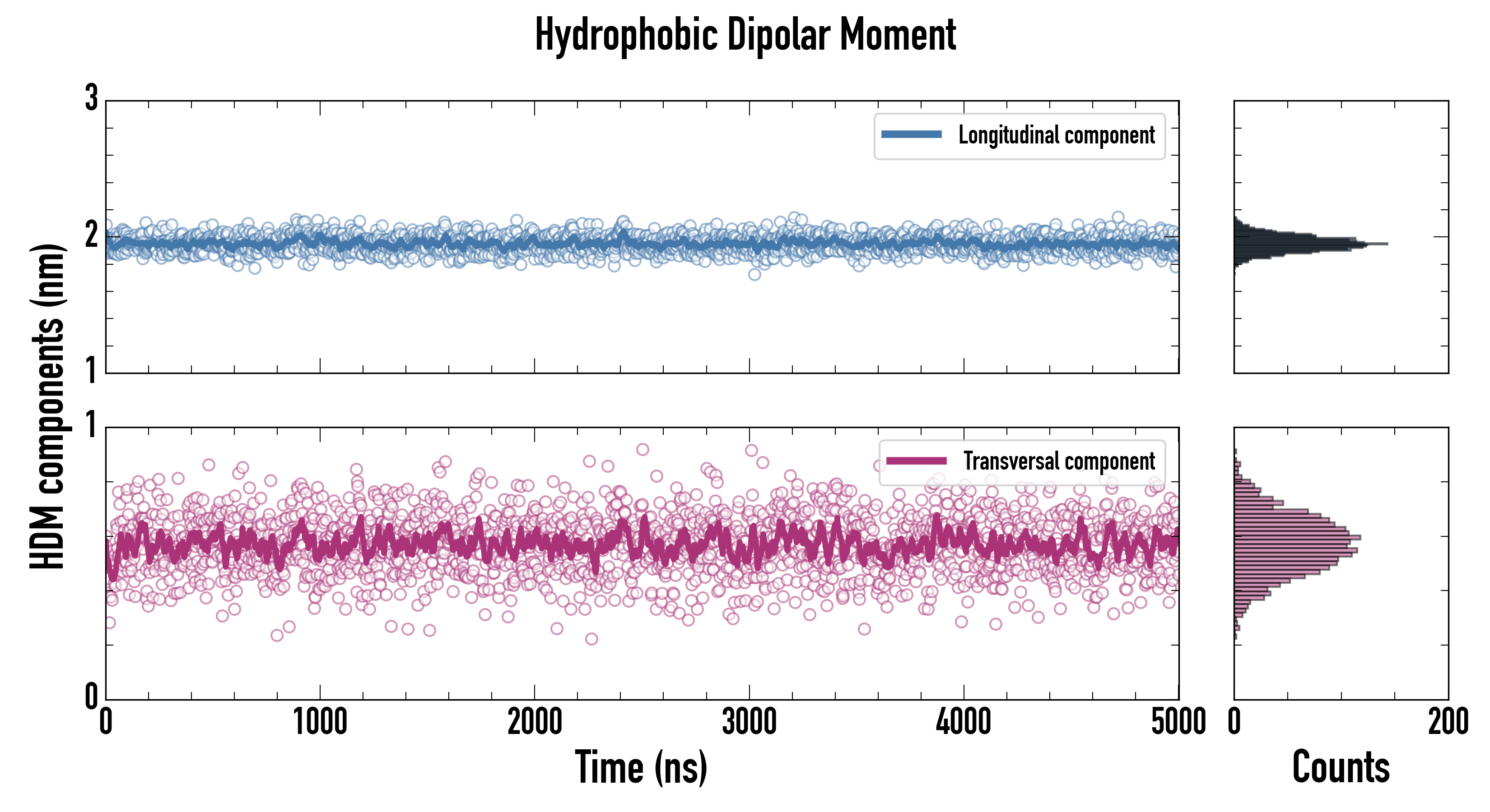 Longitudinal (e nm): 1.22 Transversal (e nm): 0.73 Hydrophobic Dipolar Moment (nm): 1.97