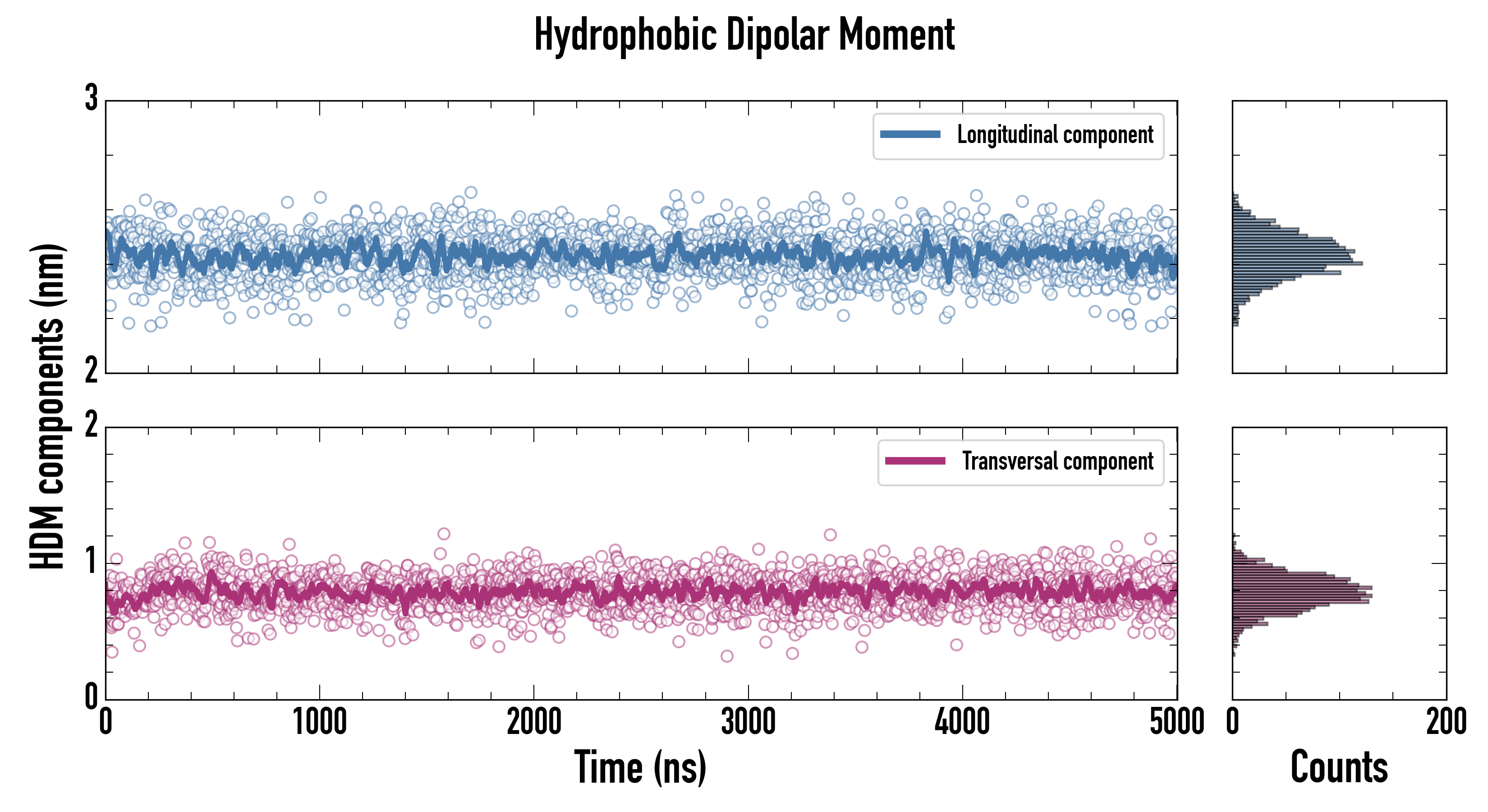 Longitudinal (e nm): 4.9 Transversal (e nm): 1.07 Hydrophobic Dipolar Moment (nm): 2.71