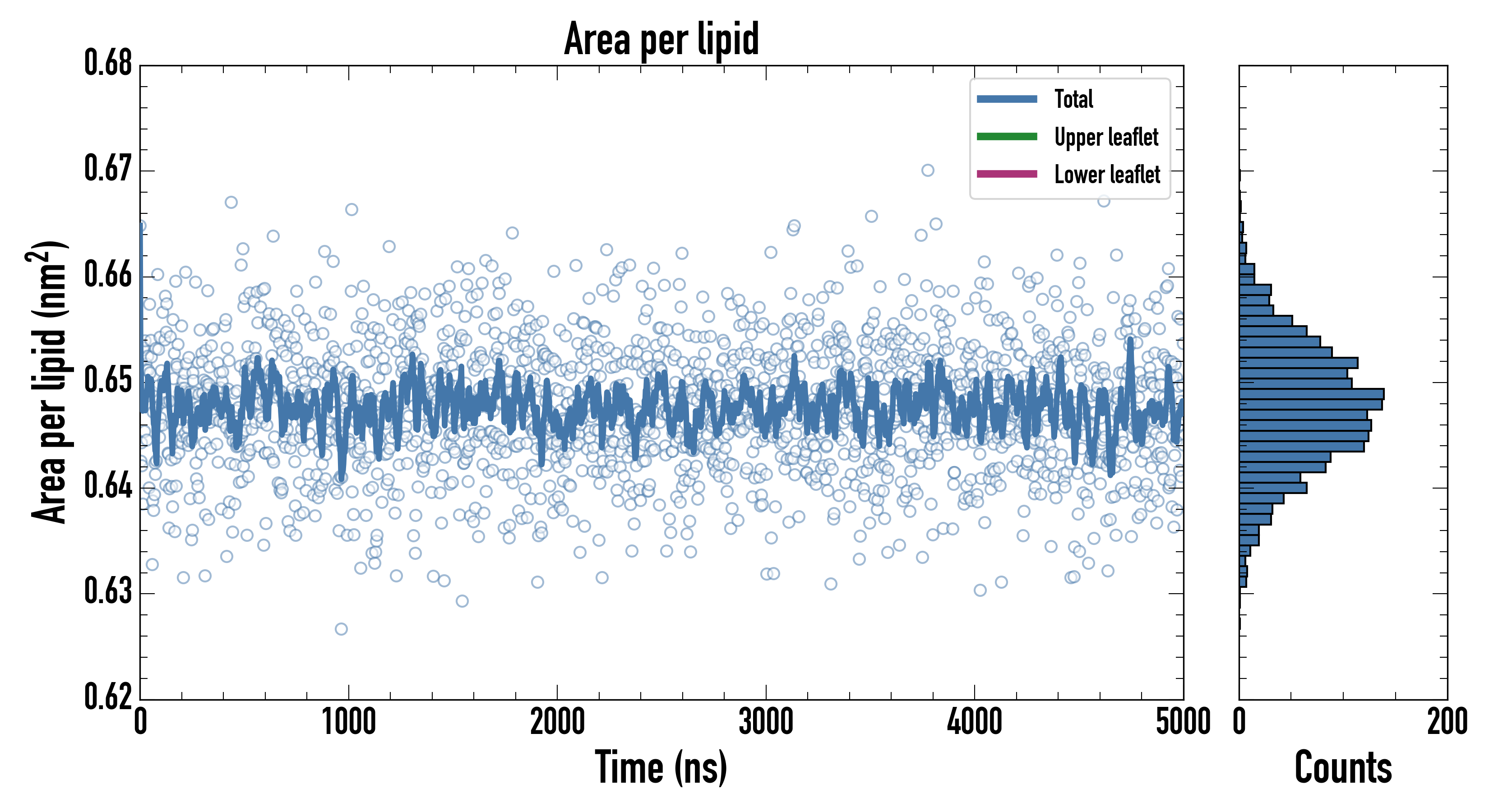 Upper leaflet (nm2): 0.647305000 ± 0.000977151