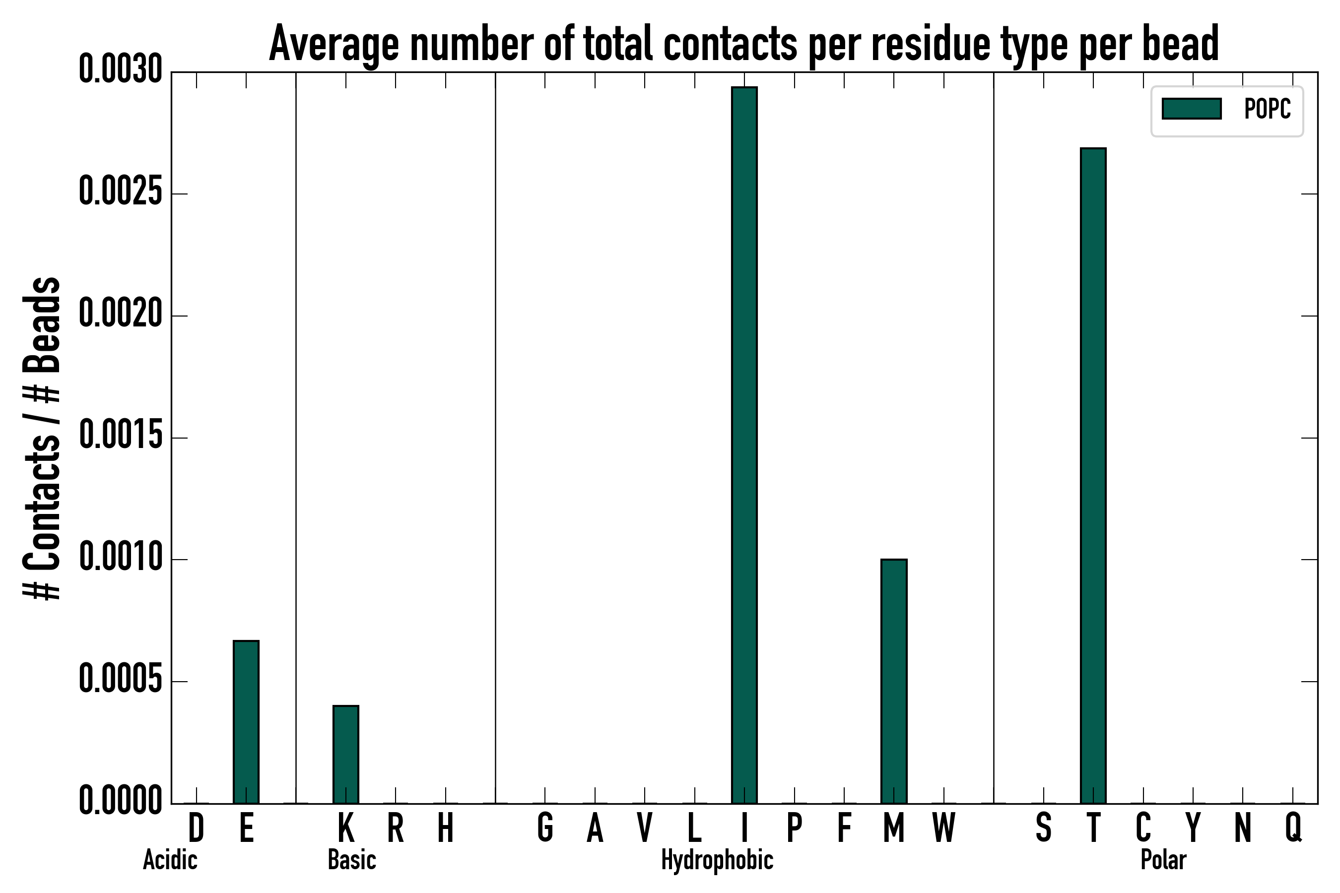 Number of total contacts per residue type: