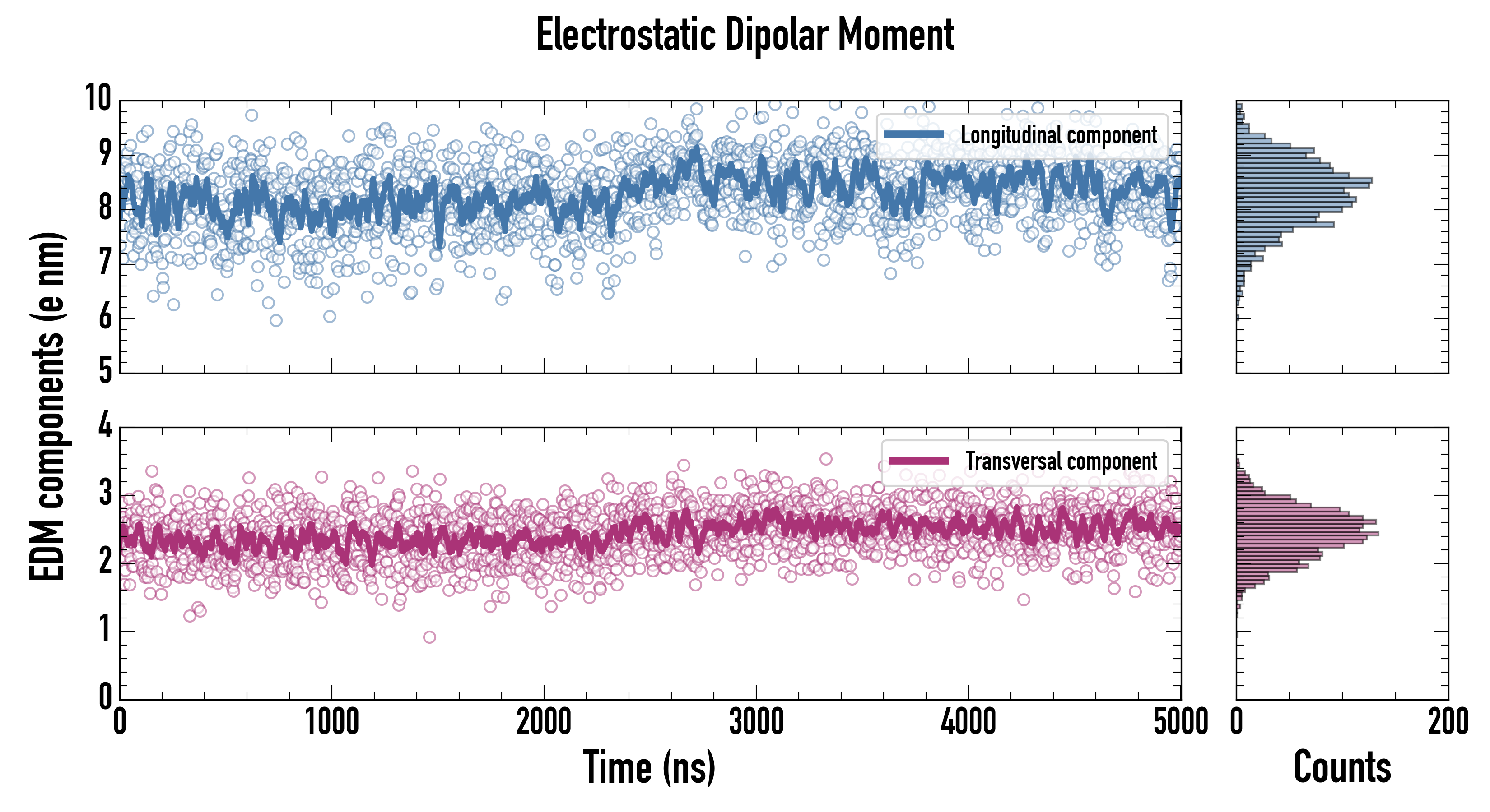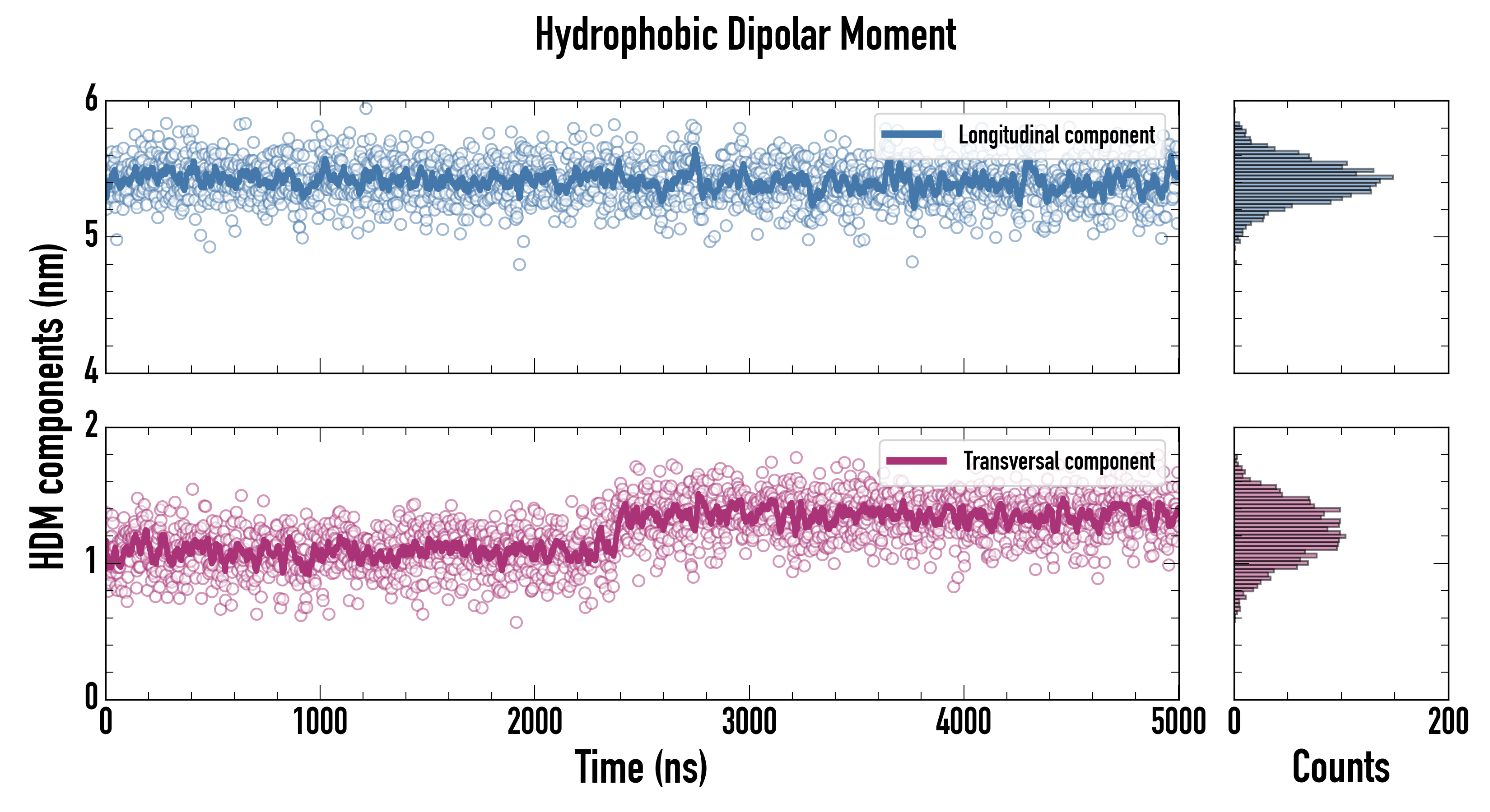 Longitudinal (e nm): 10.37 Transversal (e nm): 2.07 Hydrophobic Dipolar Moment (nm): 5.73