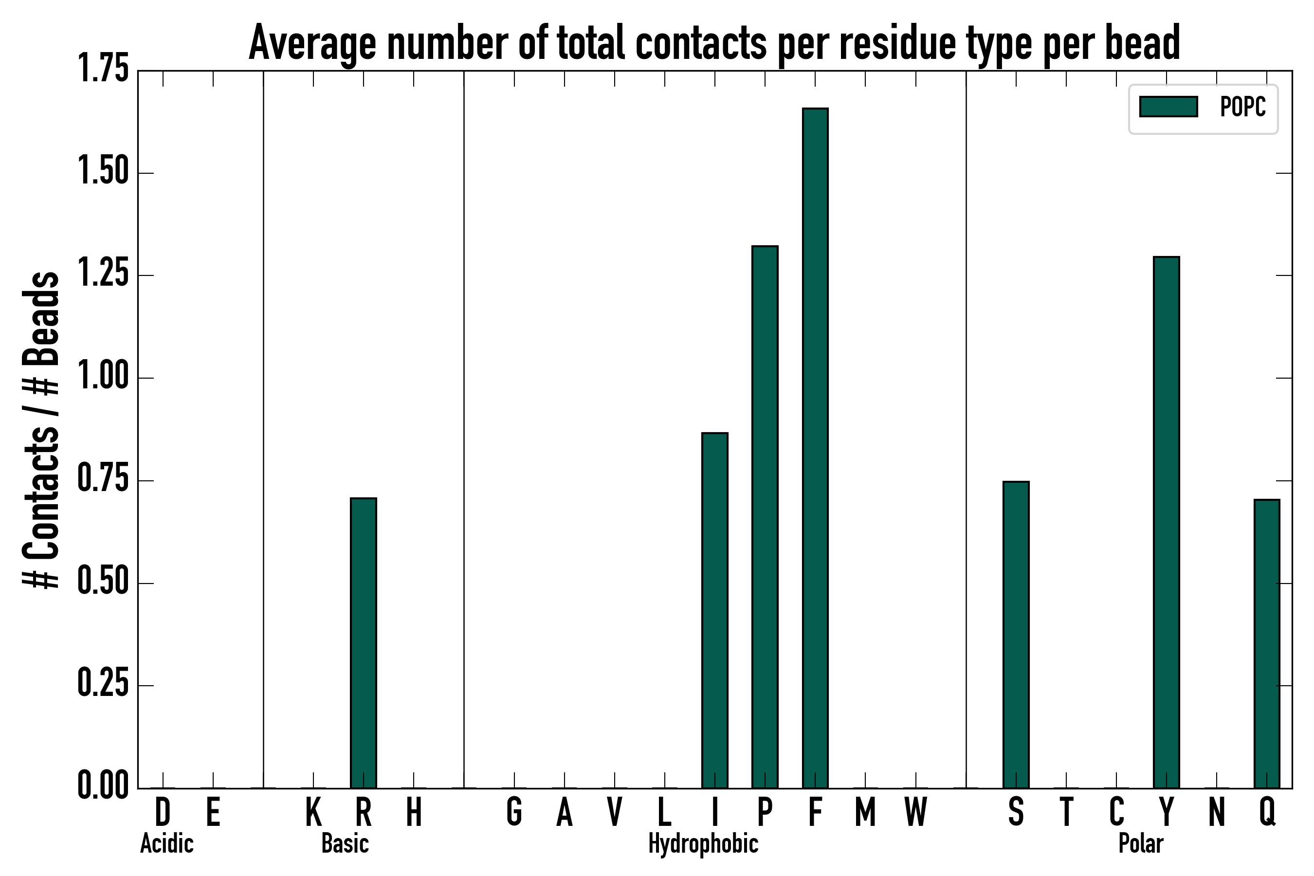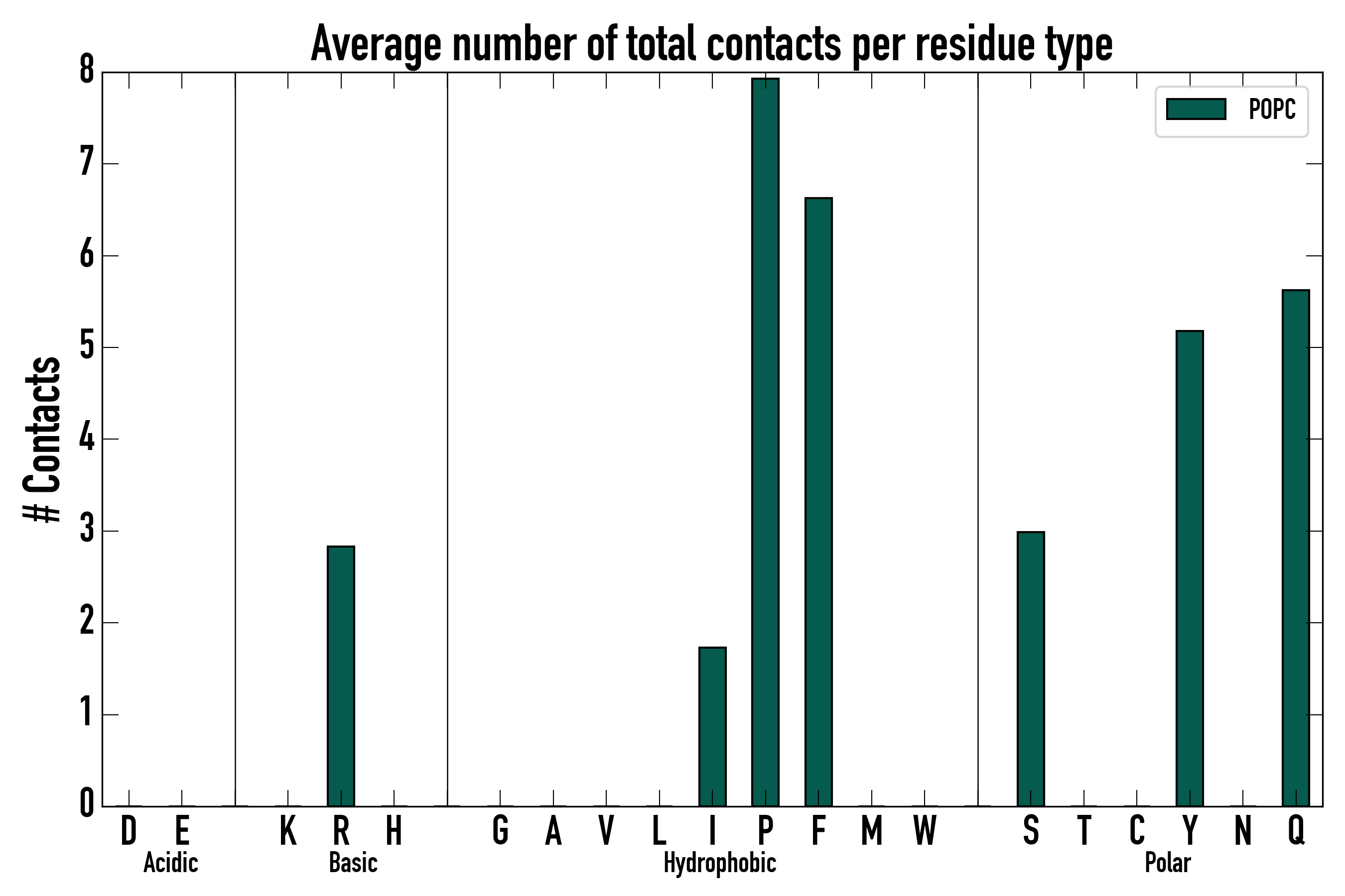 Number of total contacts per residue type: