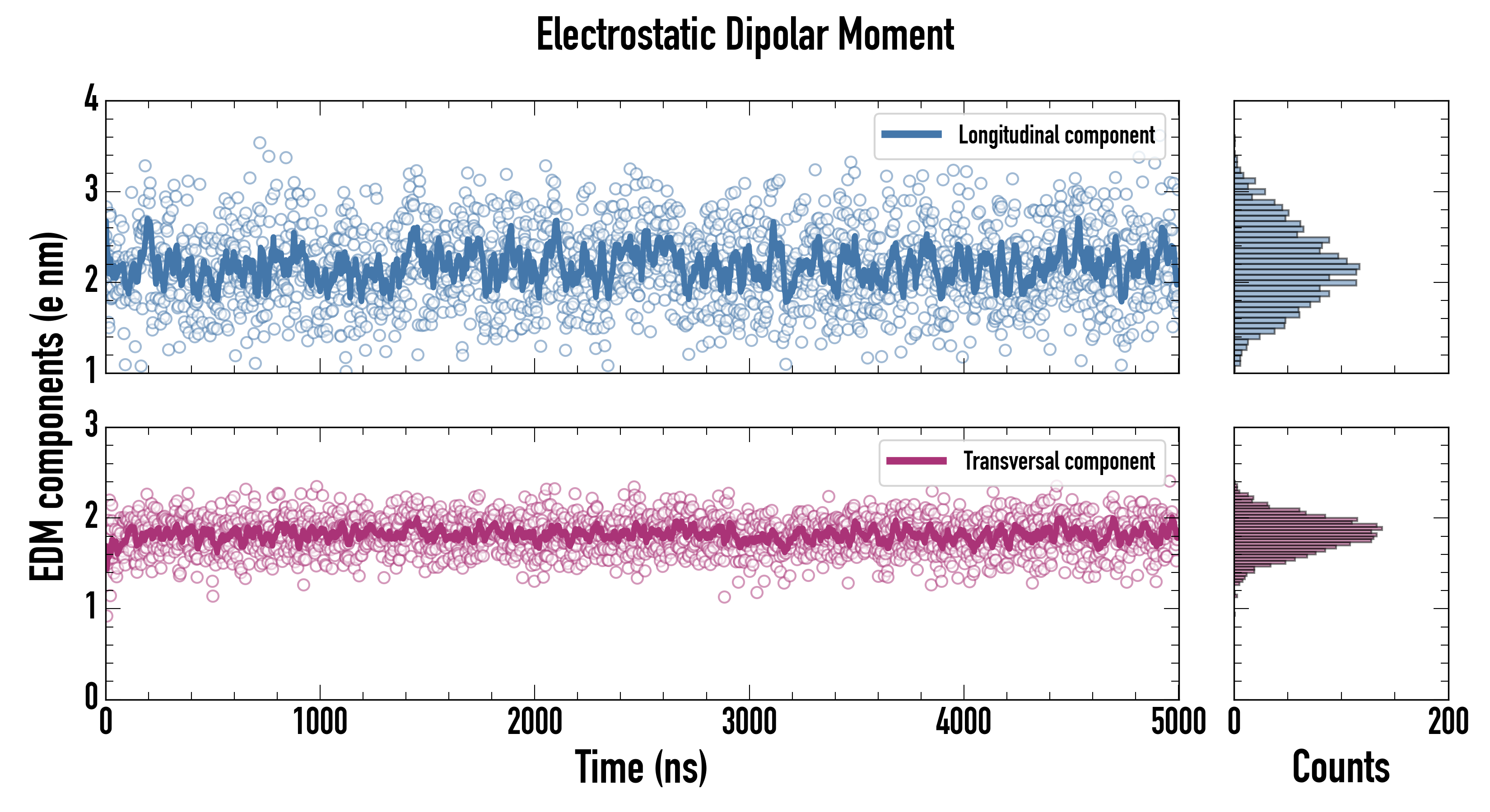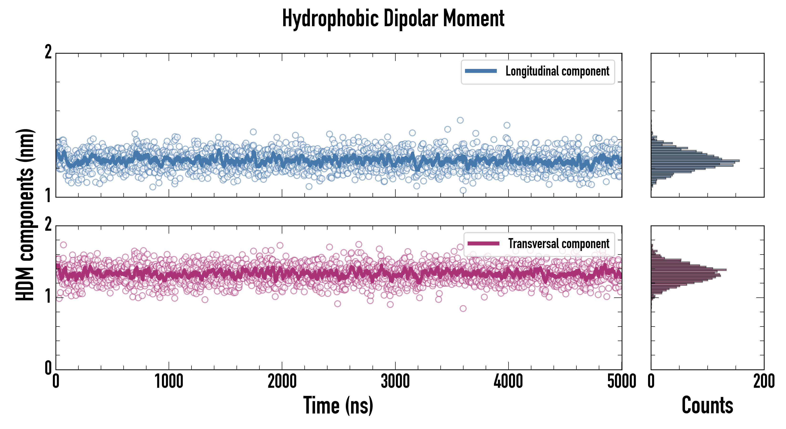 Longitudinal (e nm): 3.59 Transversal (e nm): 1.64 Hydrophobic Dipolar Moment (nm): 1.84