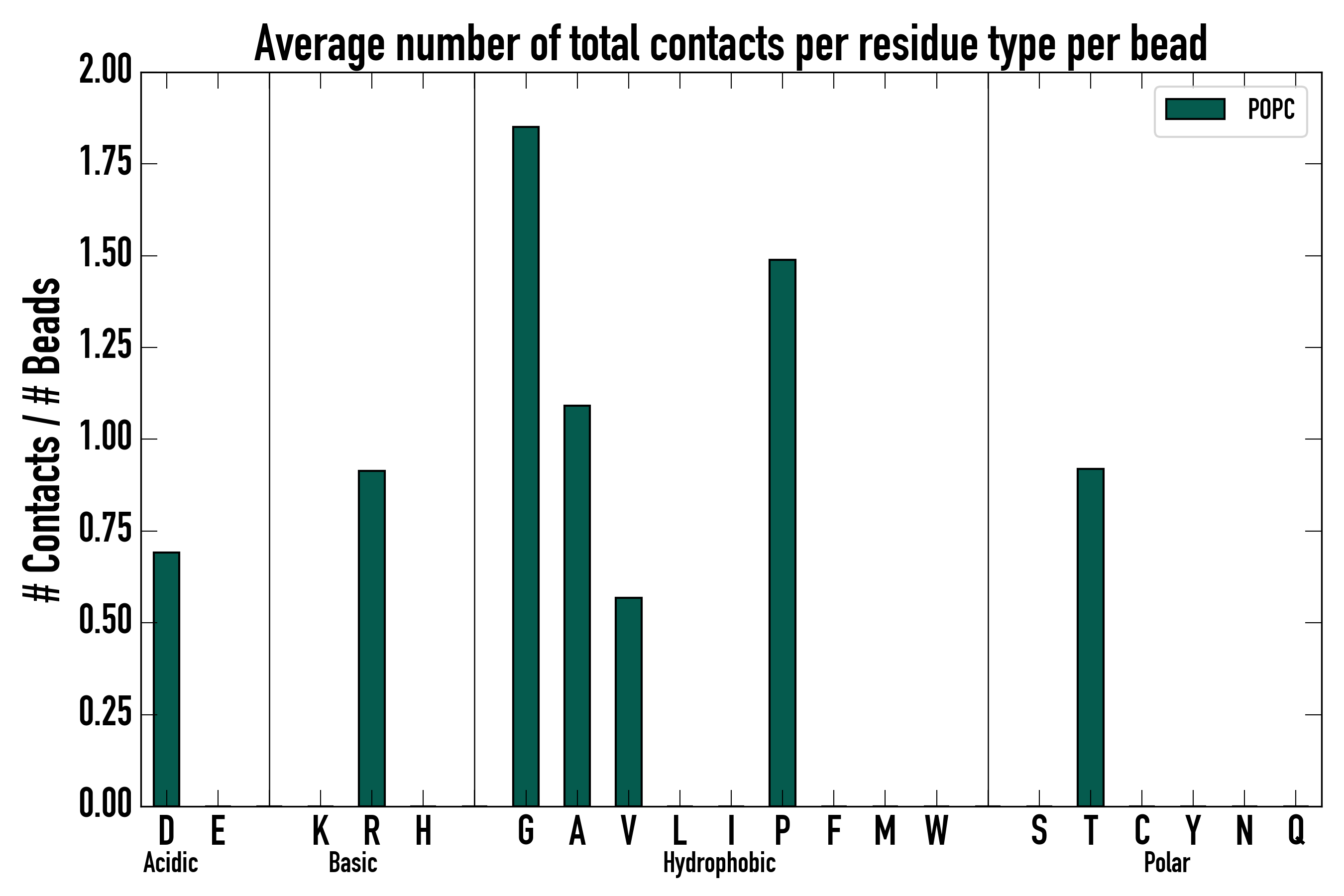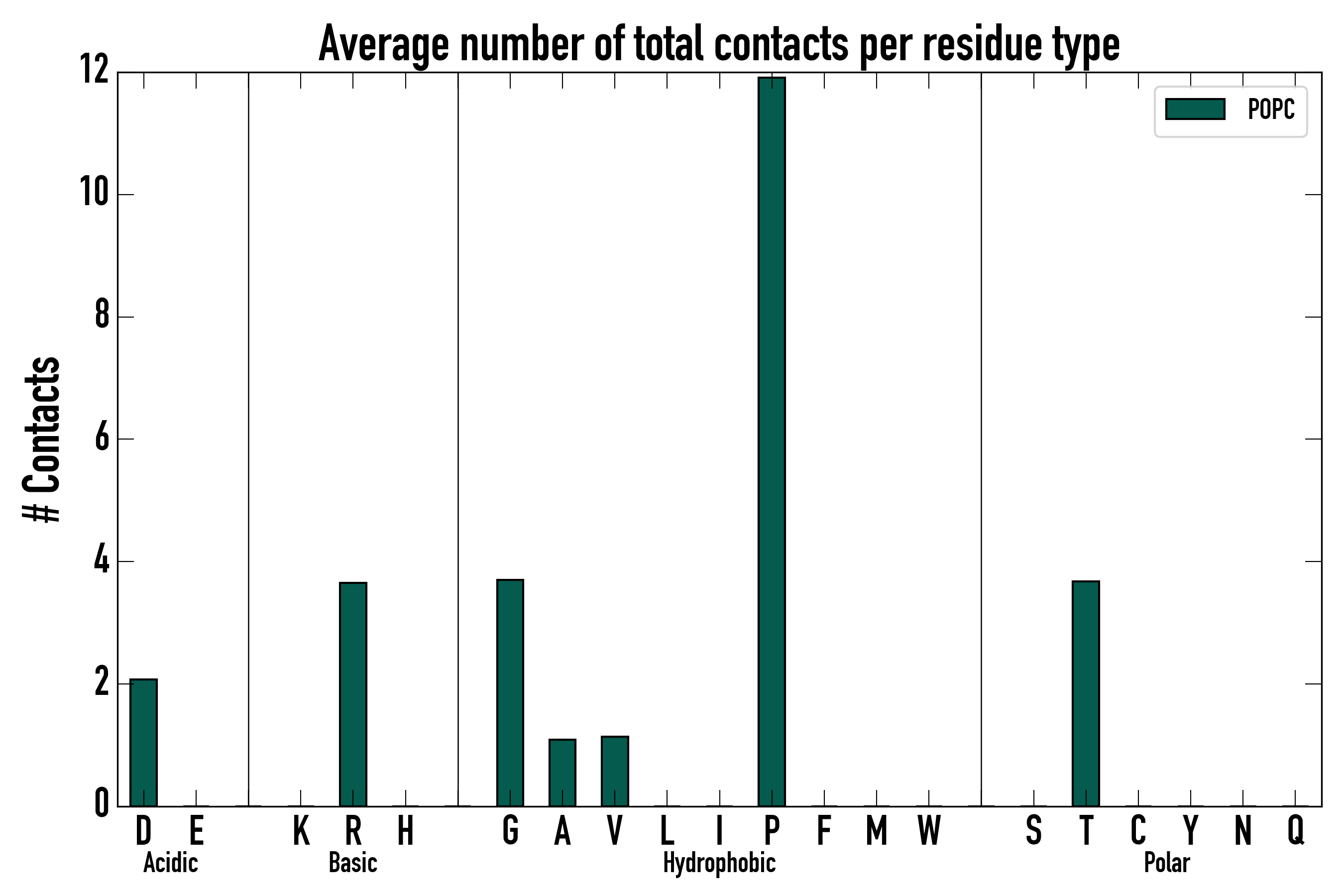 Number of total contacts per residue type:
