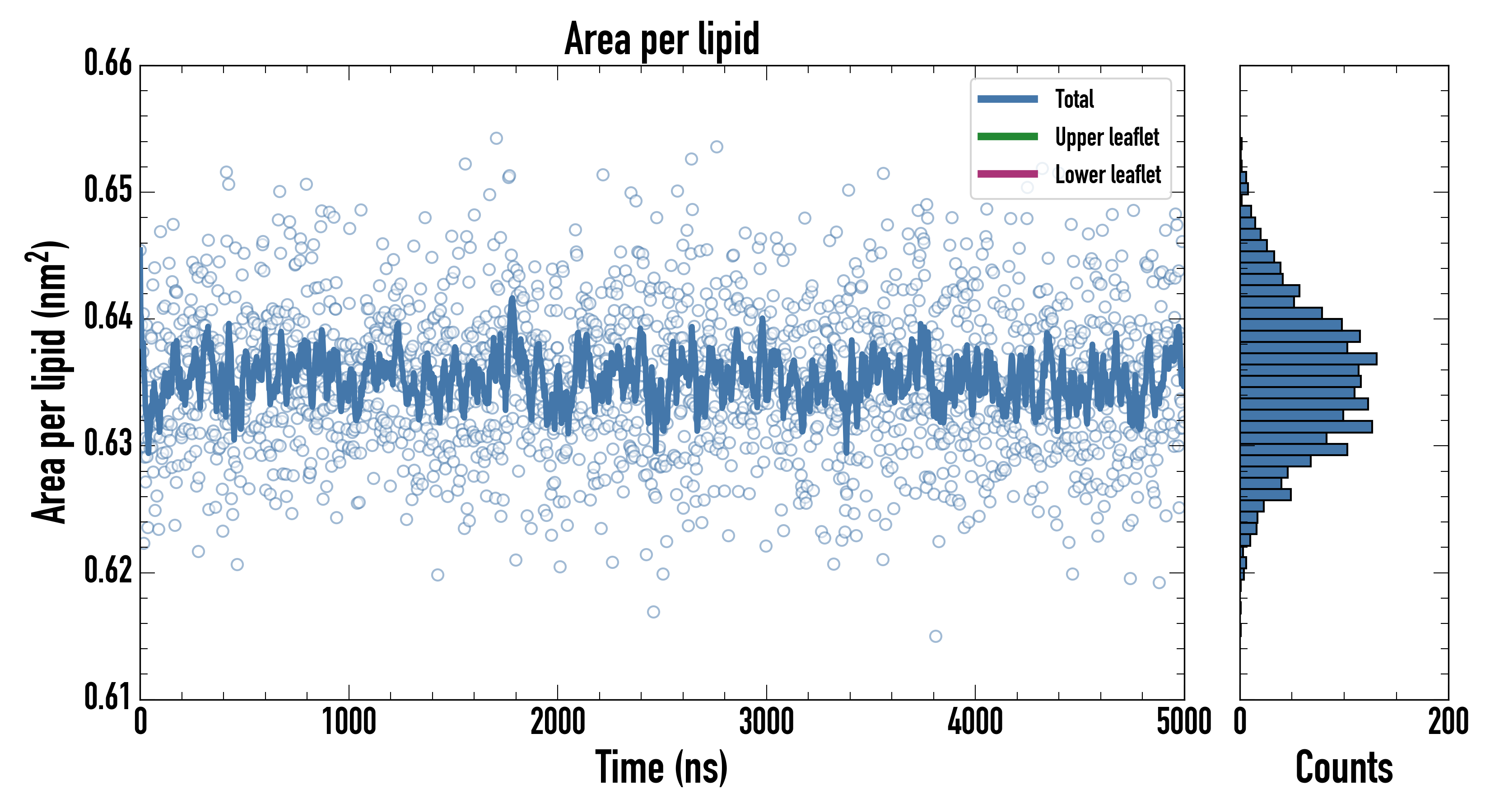 Upper leaflet (nm2): 0.634994000 ± 0.000996442