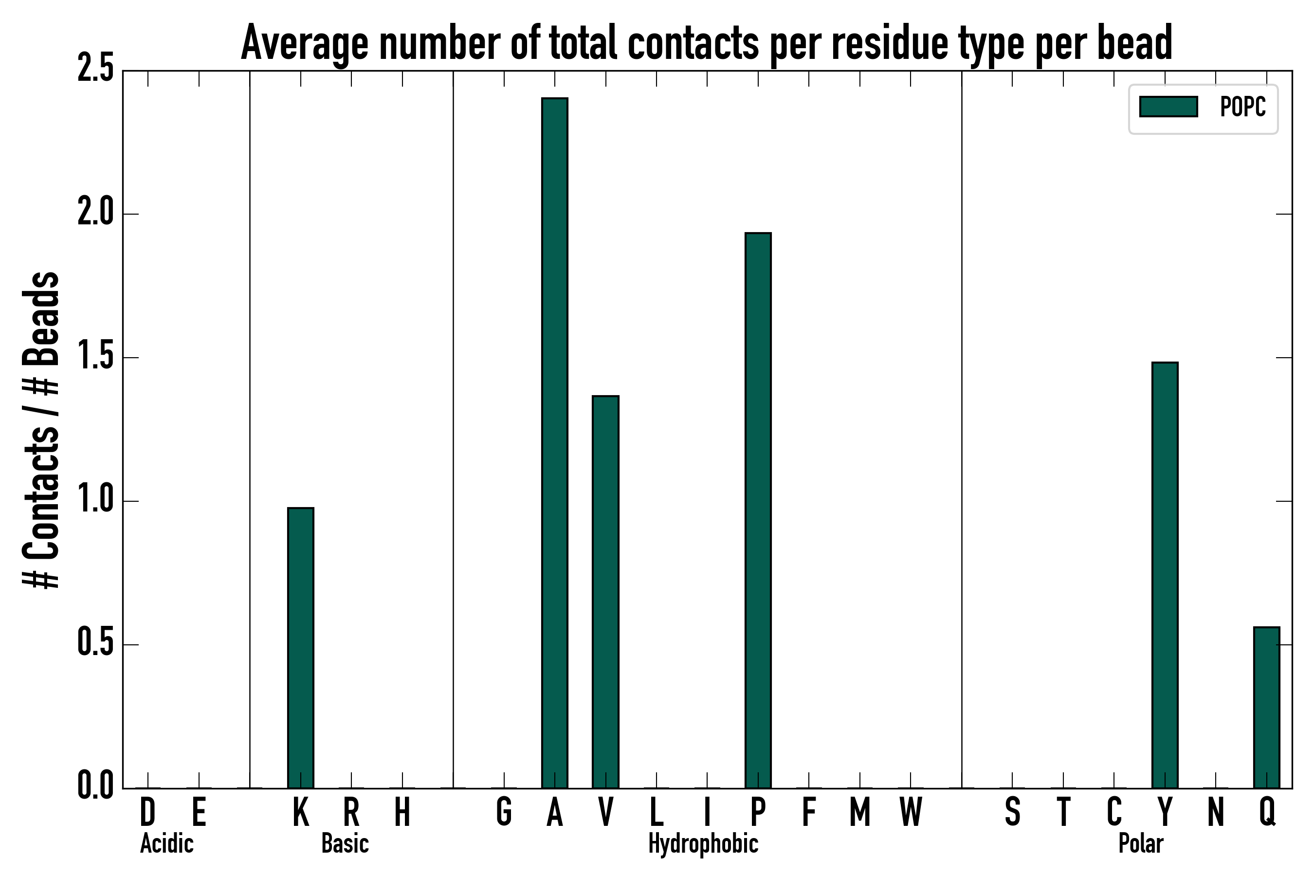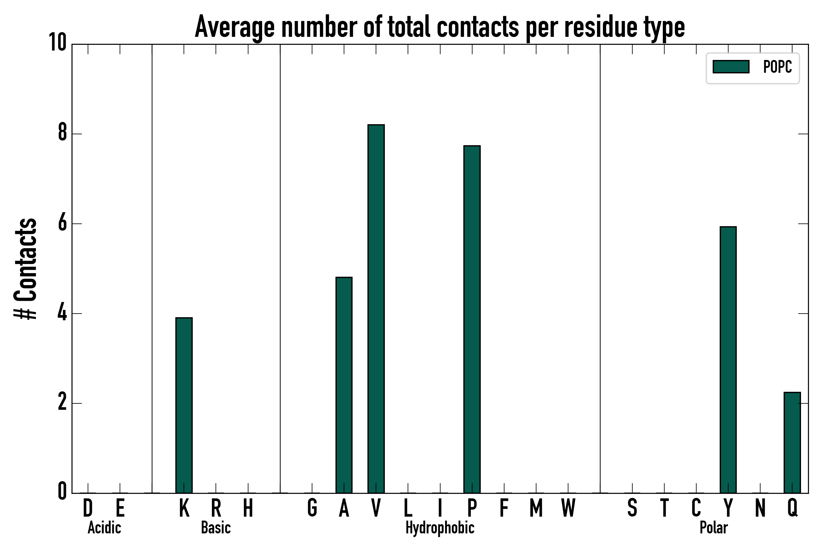 Number of total contacts per residue type:
