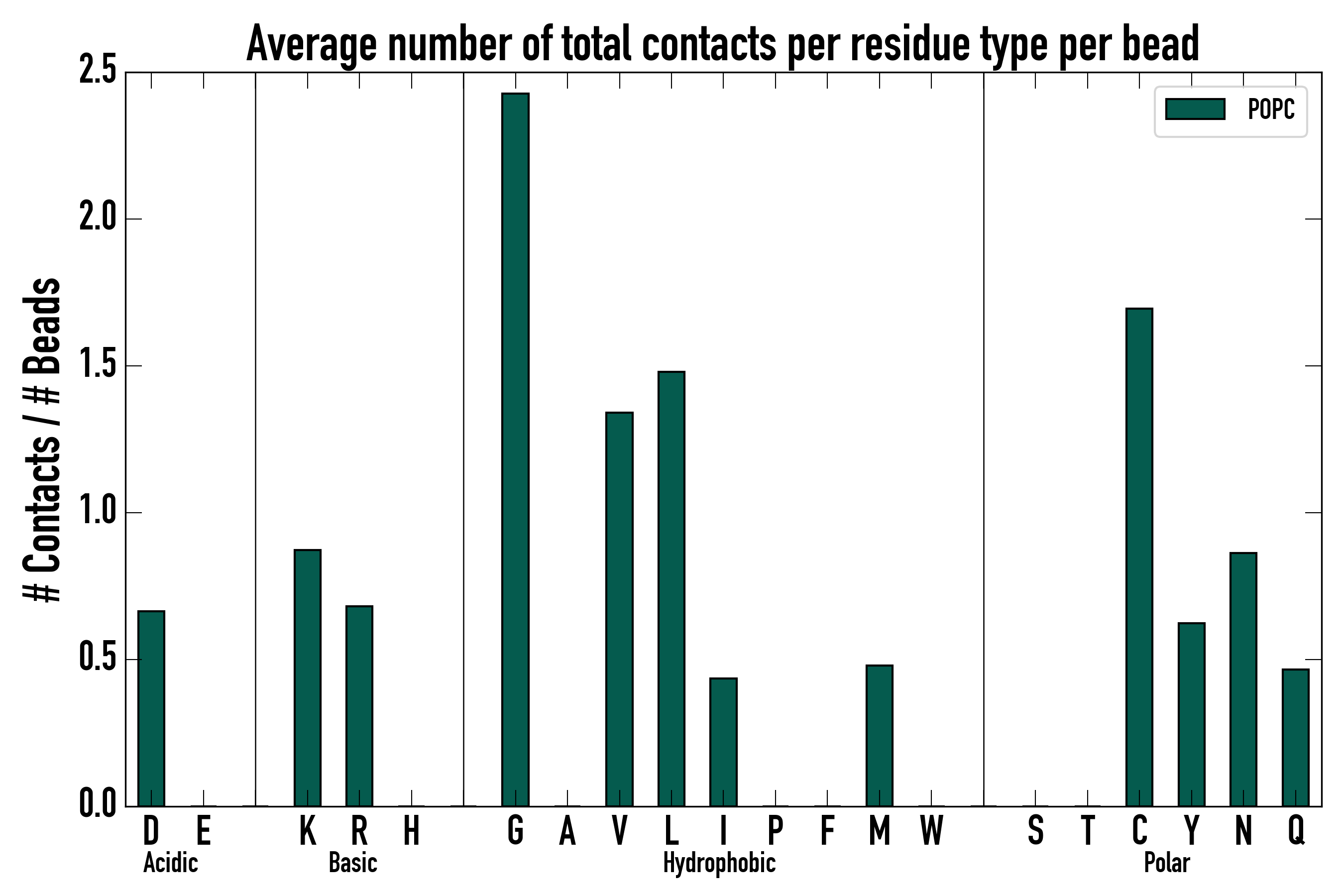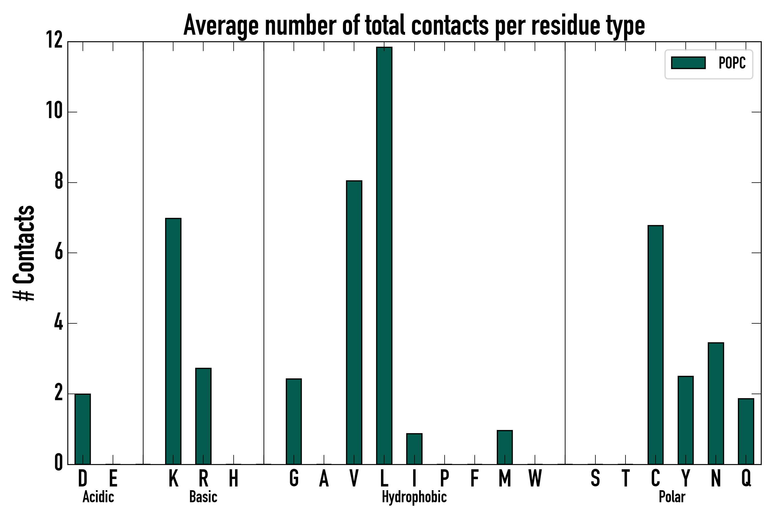 Number of total contacts per residue type: