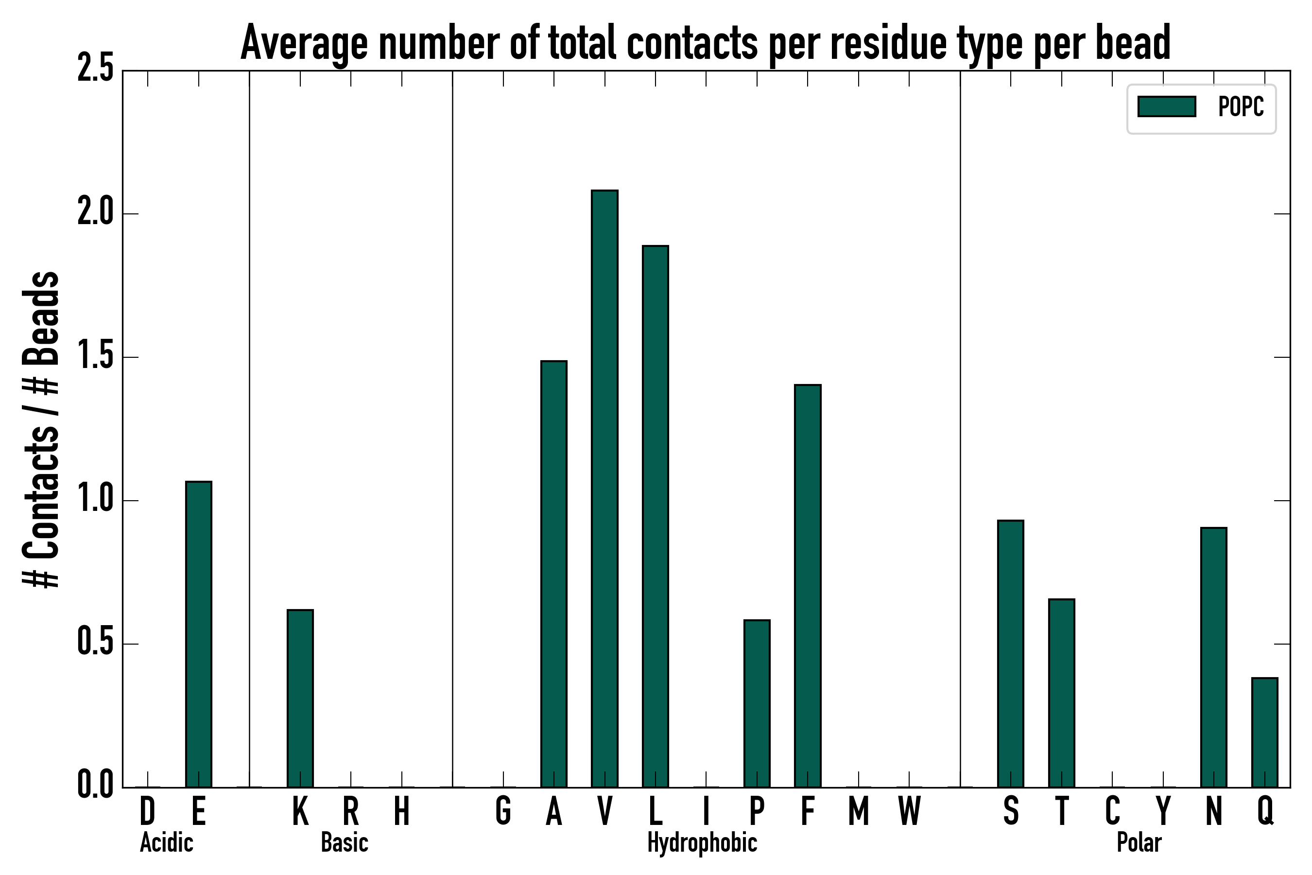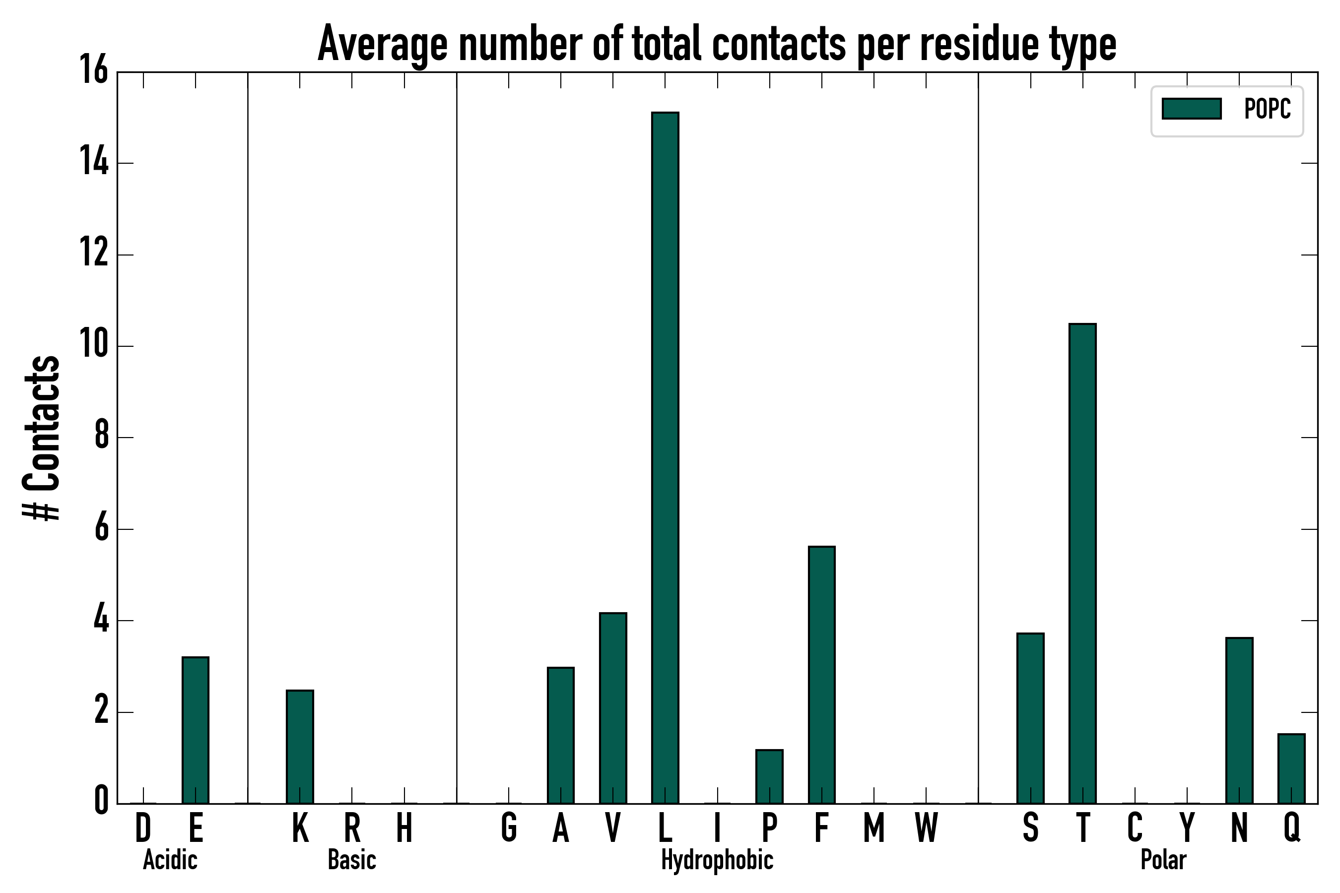 Number of total contacts per residue type: