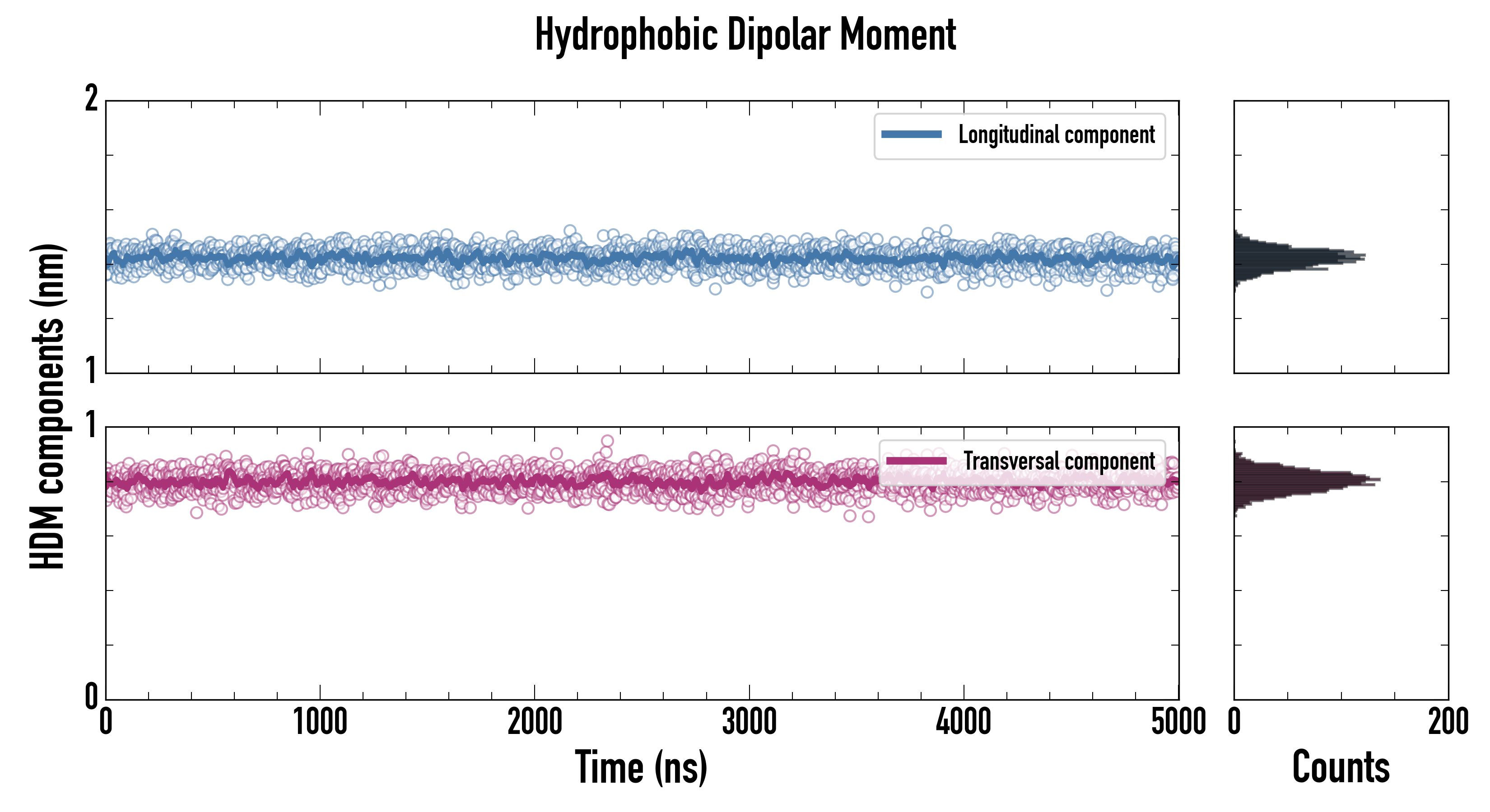Longitudinal (e nm): 1.91 Transversal (e nm): 1.42 Hydrophobic Dipolar Moment (nm): 1.67