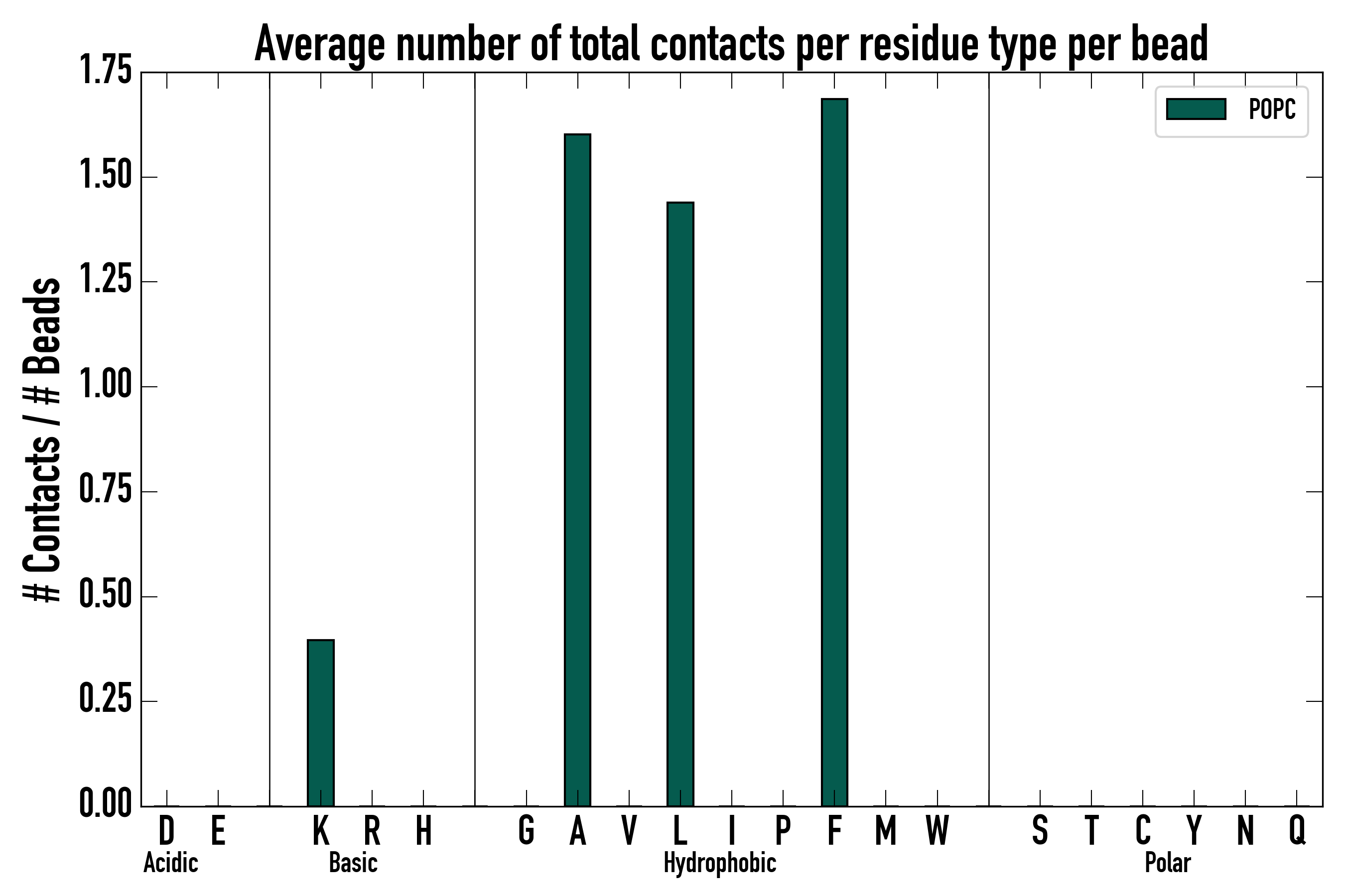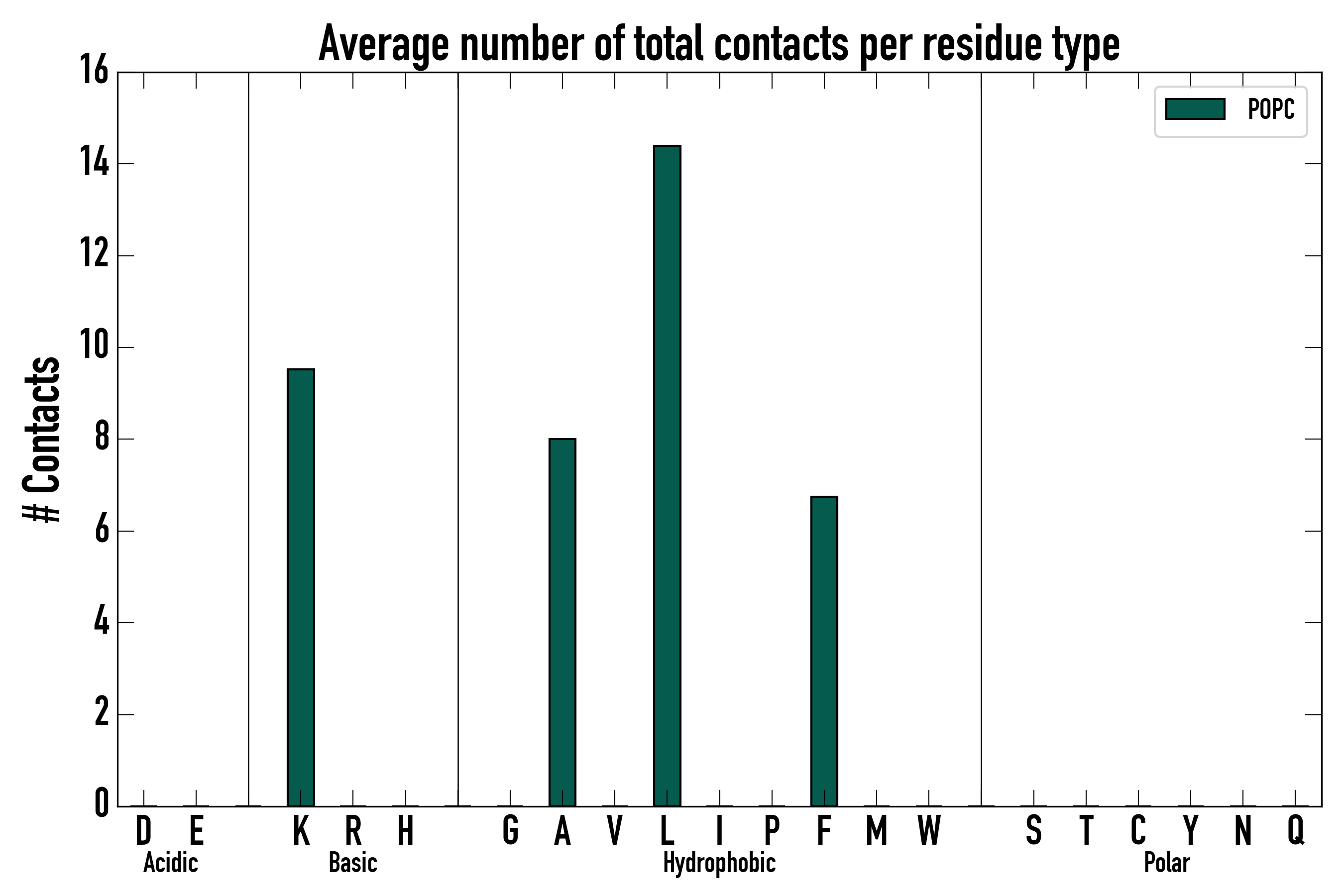 Number of total contacts per residue type:
