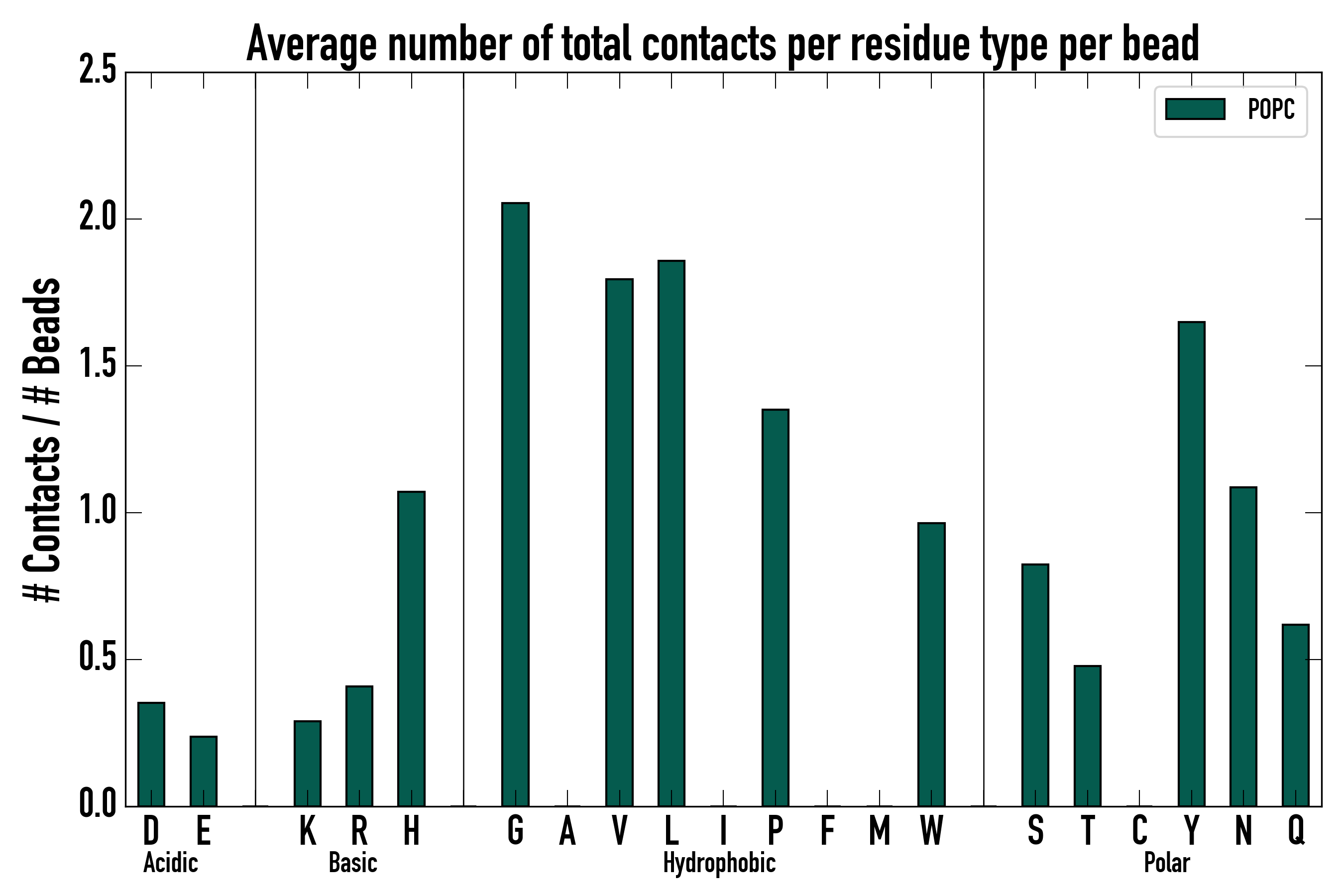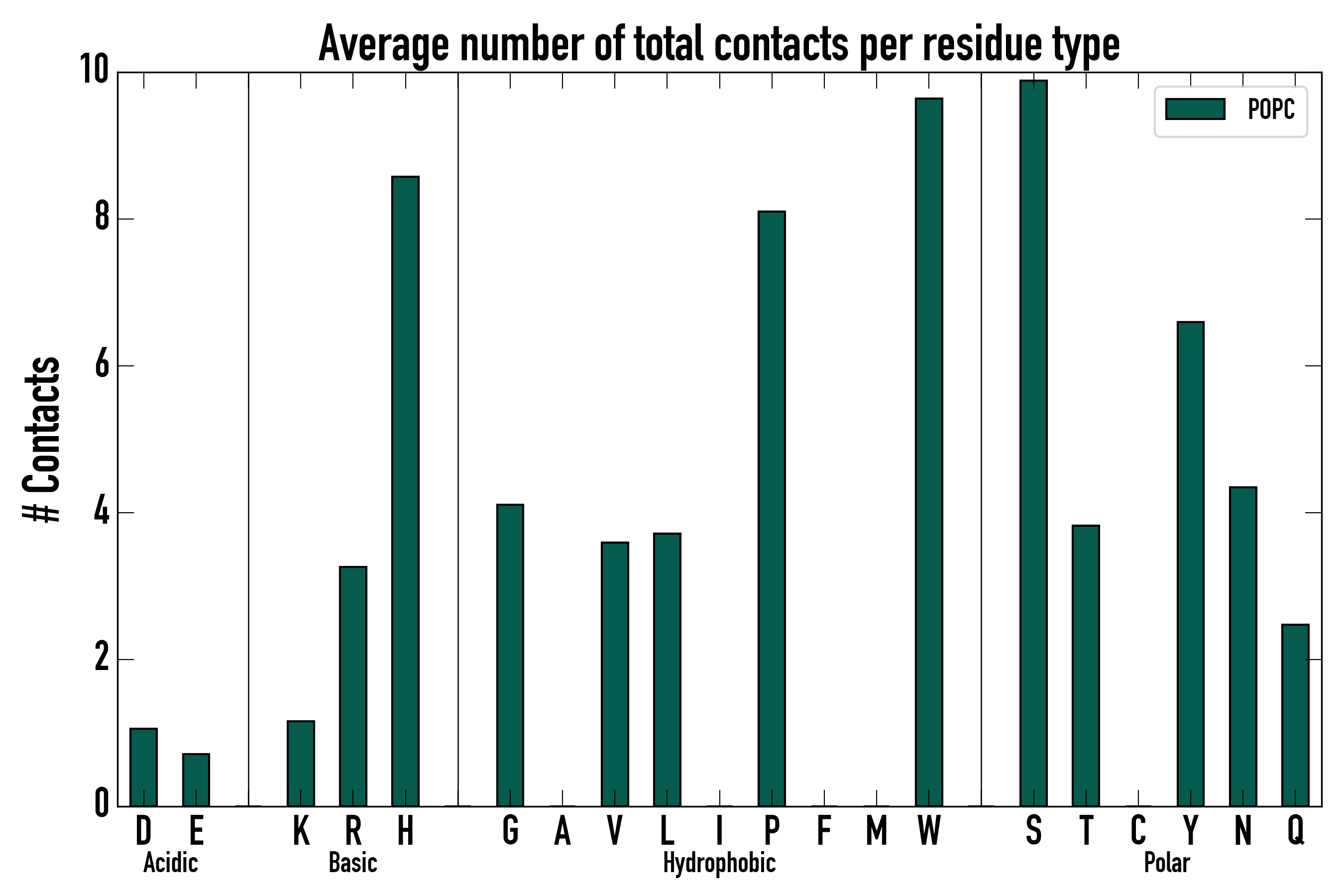 Number of total contacts per residue type: