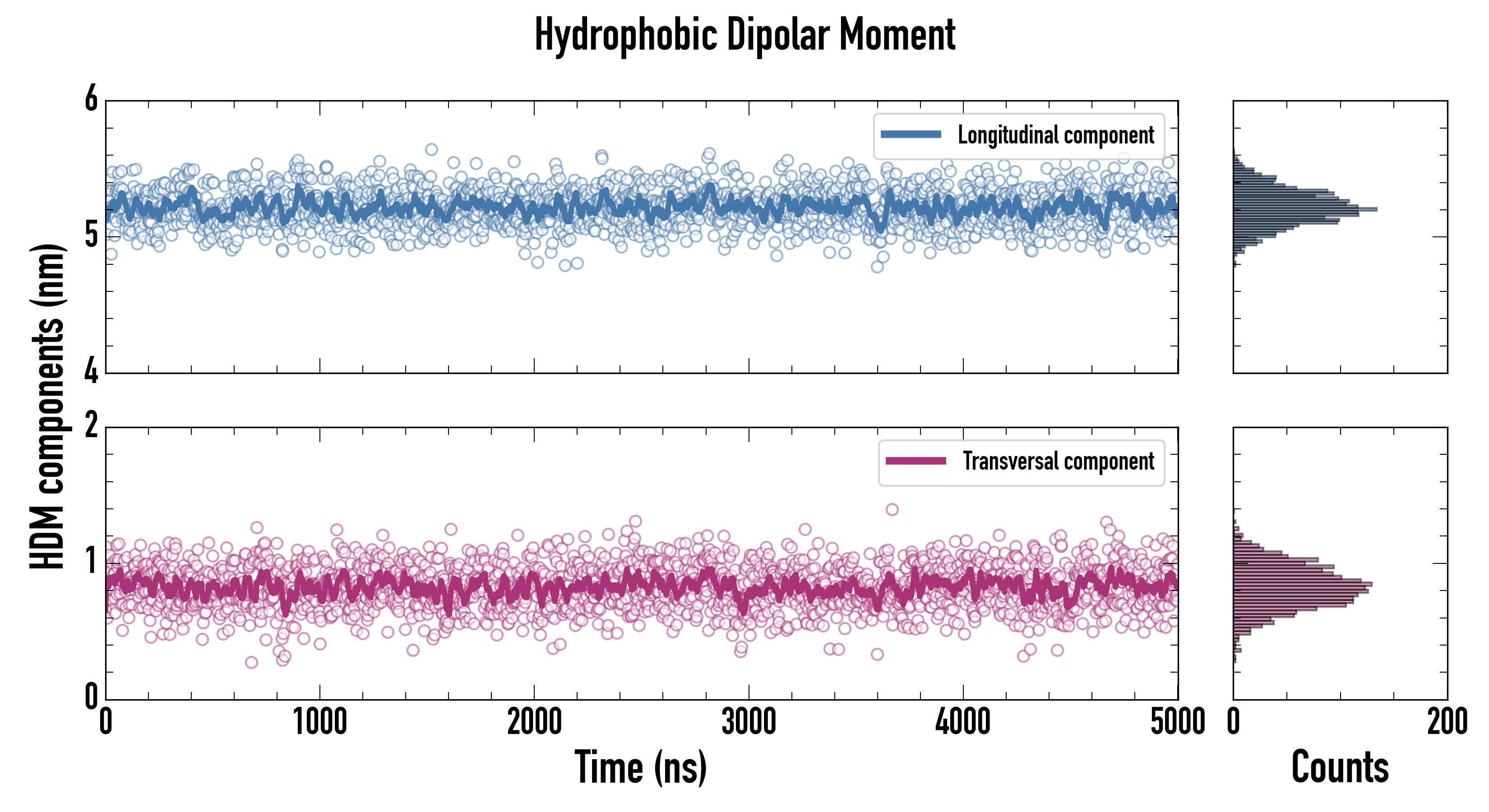Longitudinal (e nm): 5.16 Transversal (e nm): 0.4 Hydrophobic Dipolar Moment (nm): 5.5