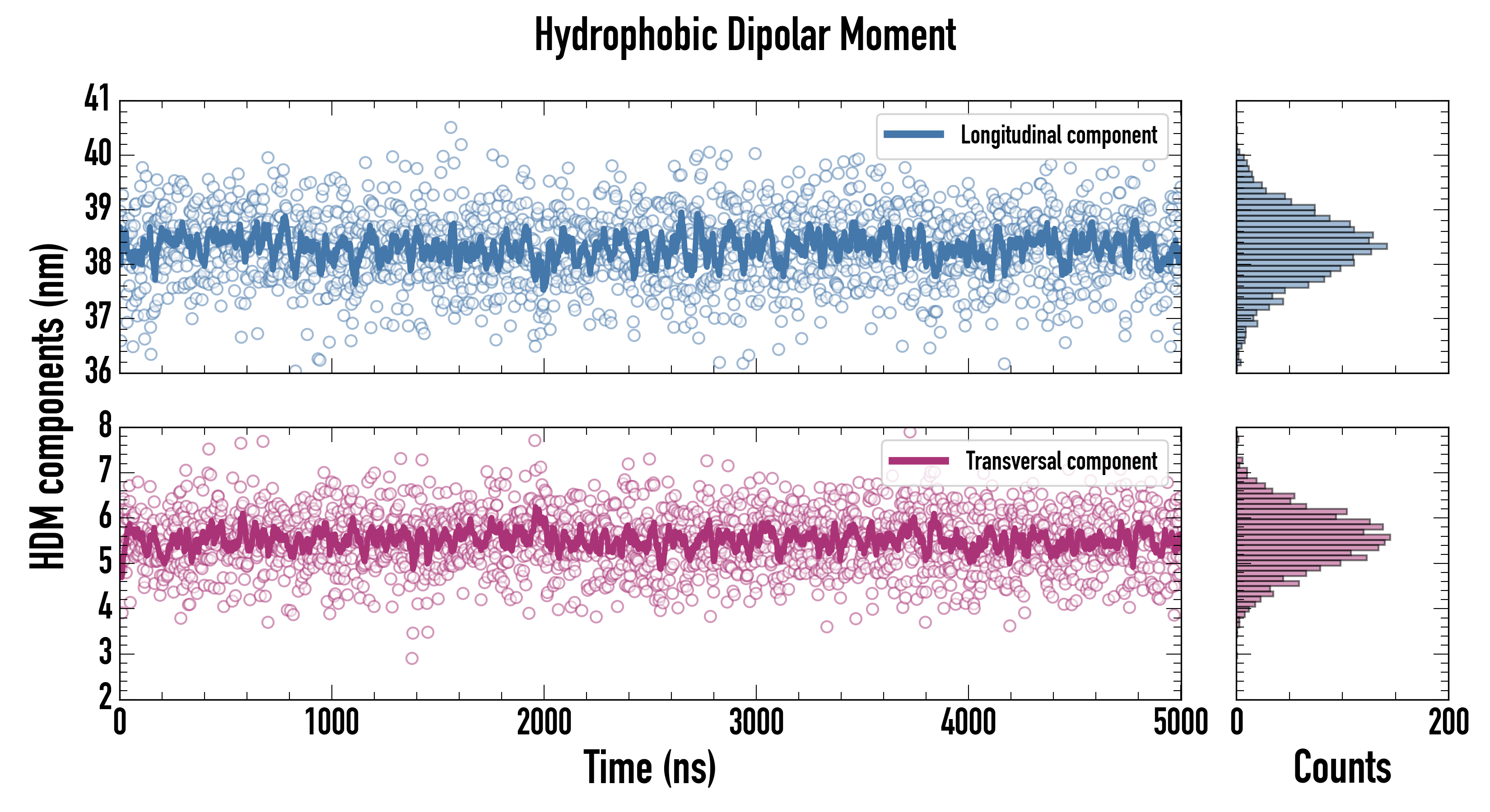 Longitudinal (e nm): 1.34 Transversal (e nm): 0.52 Hydrophobic Dipolar Moment (nm): 40.7