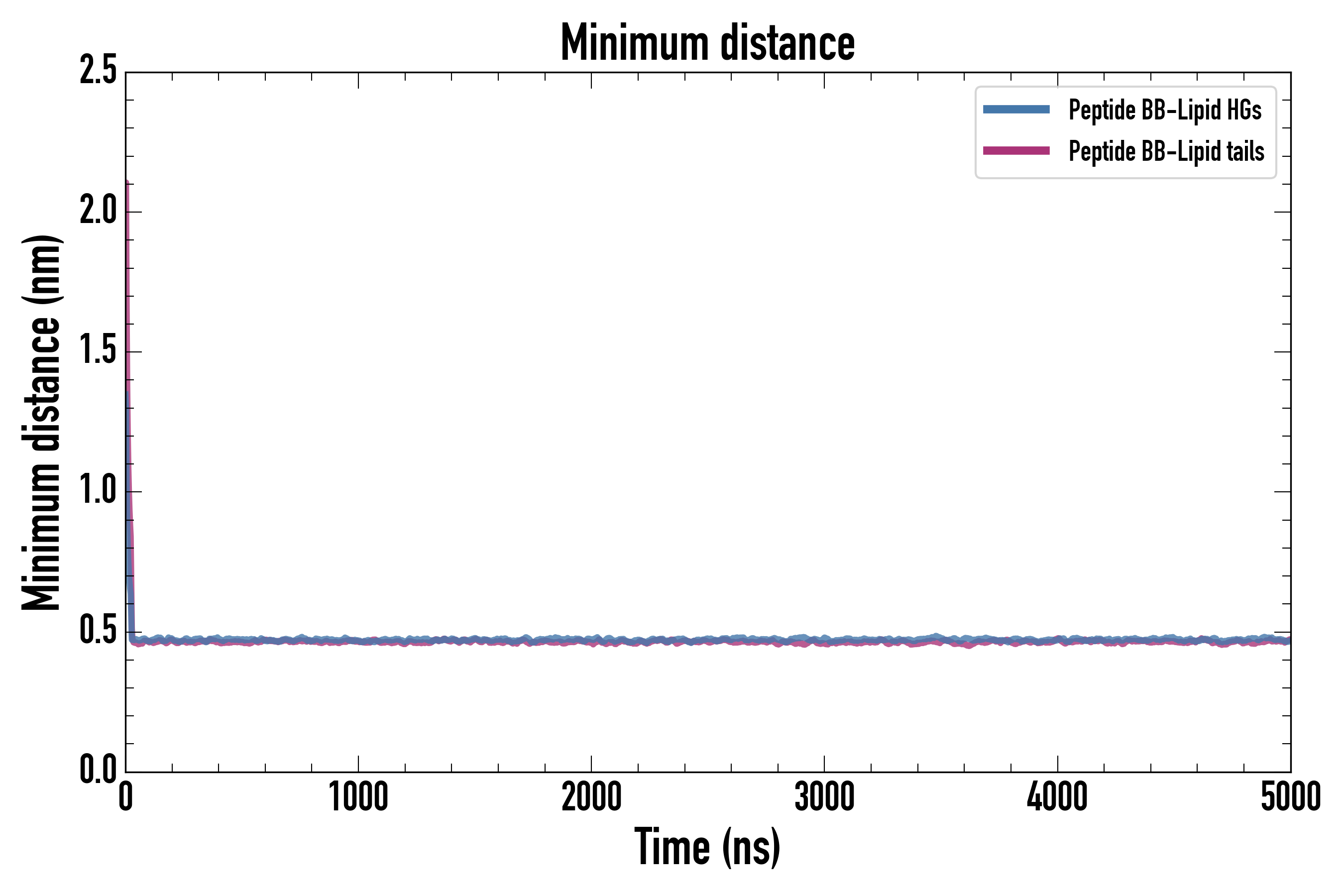 Number of contacts between each residue of the peptide backbone and the different lipid types, averaged over the last microsecond and using a cut-off of 0.6 nm.