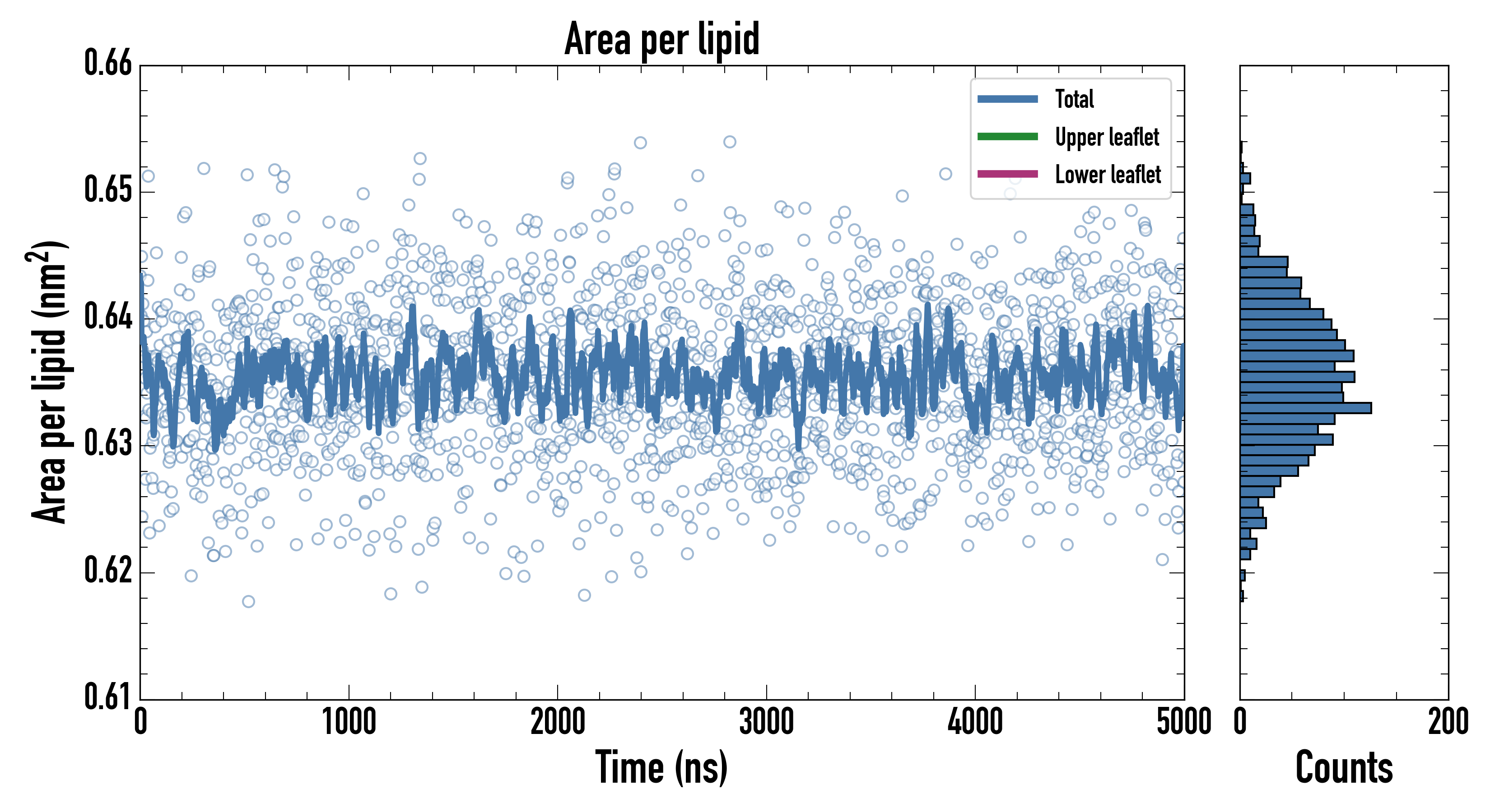 Upper leaflet (nm2): 0.635704000 ± 0.000909086