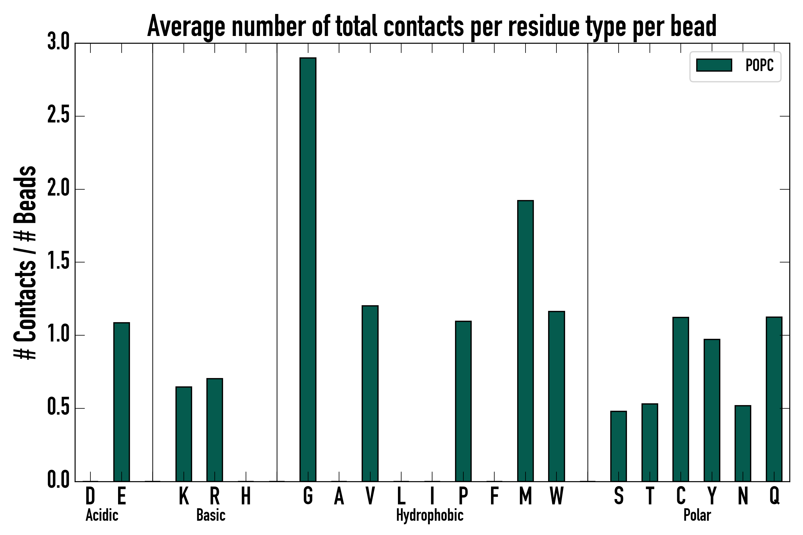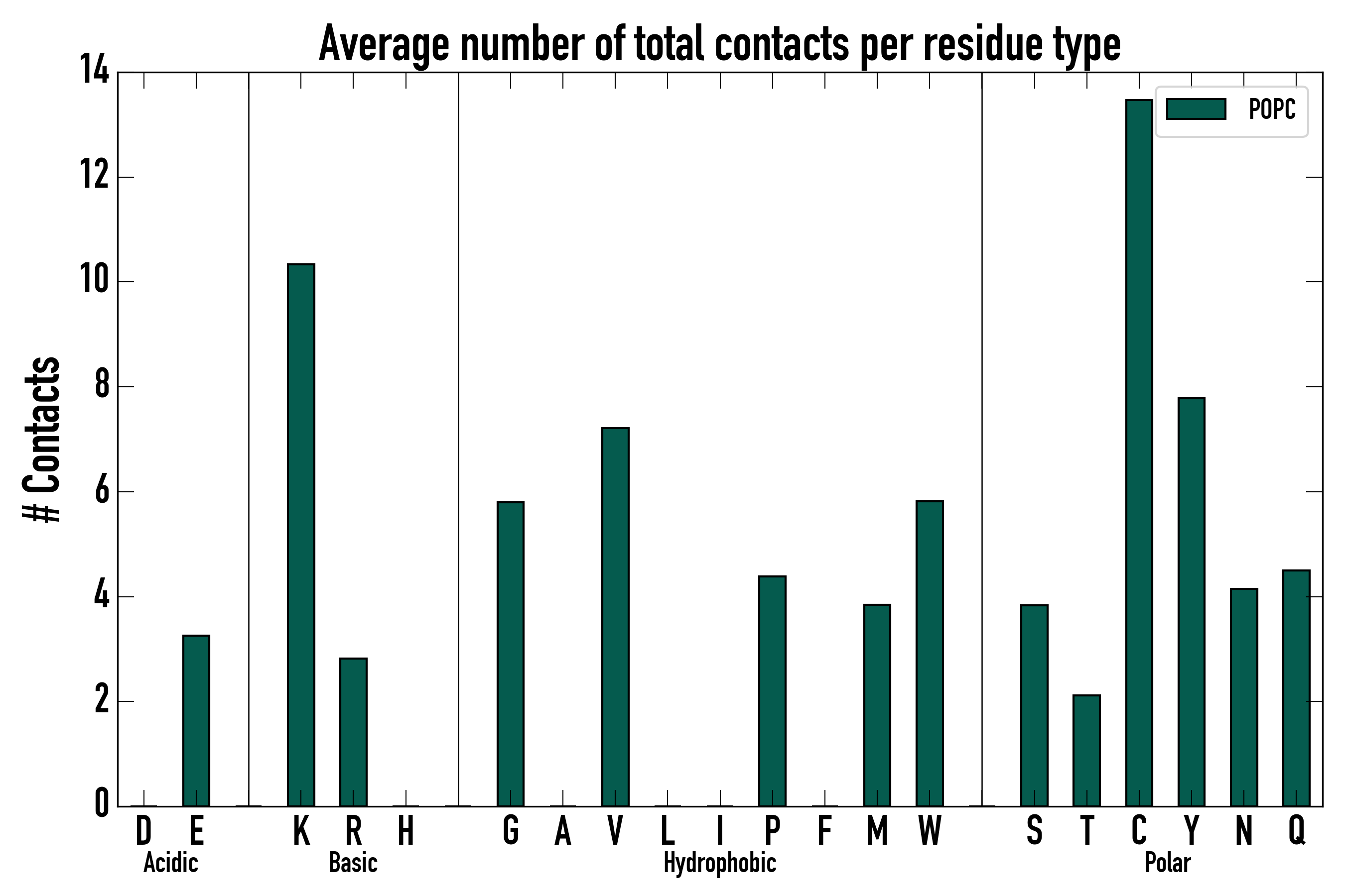 Number of total contacts per residue type: