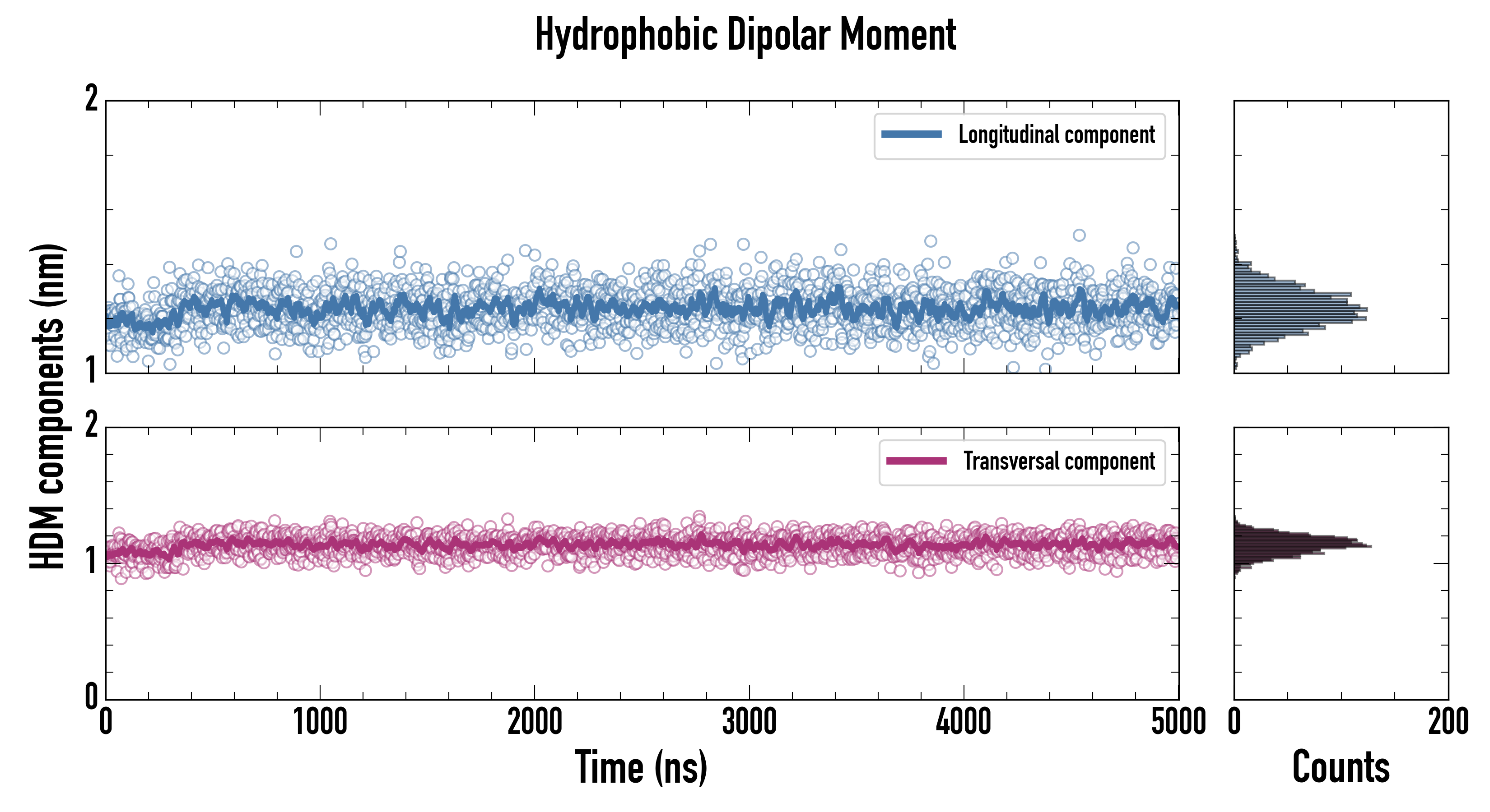 Longitudinal (e nm): 1.33 Transversal (e nm): 1.25 Hydrophobic Dipolar Moment (nm): 1.72