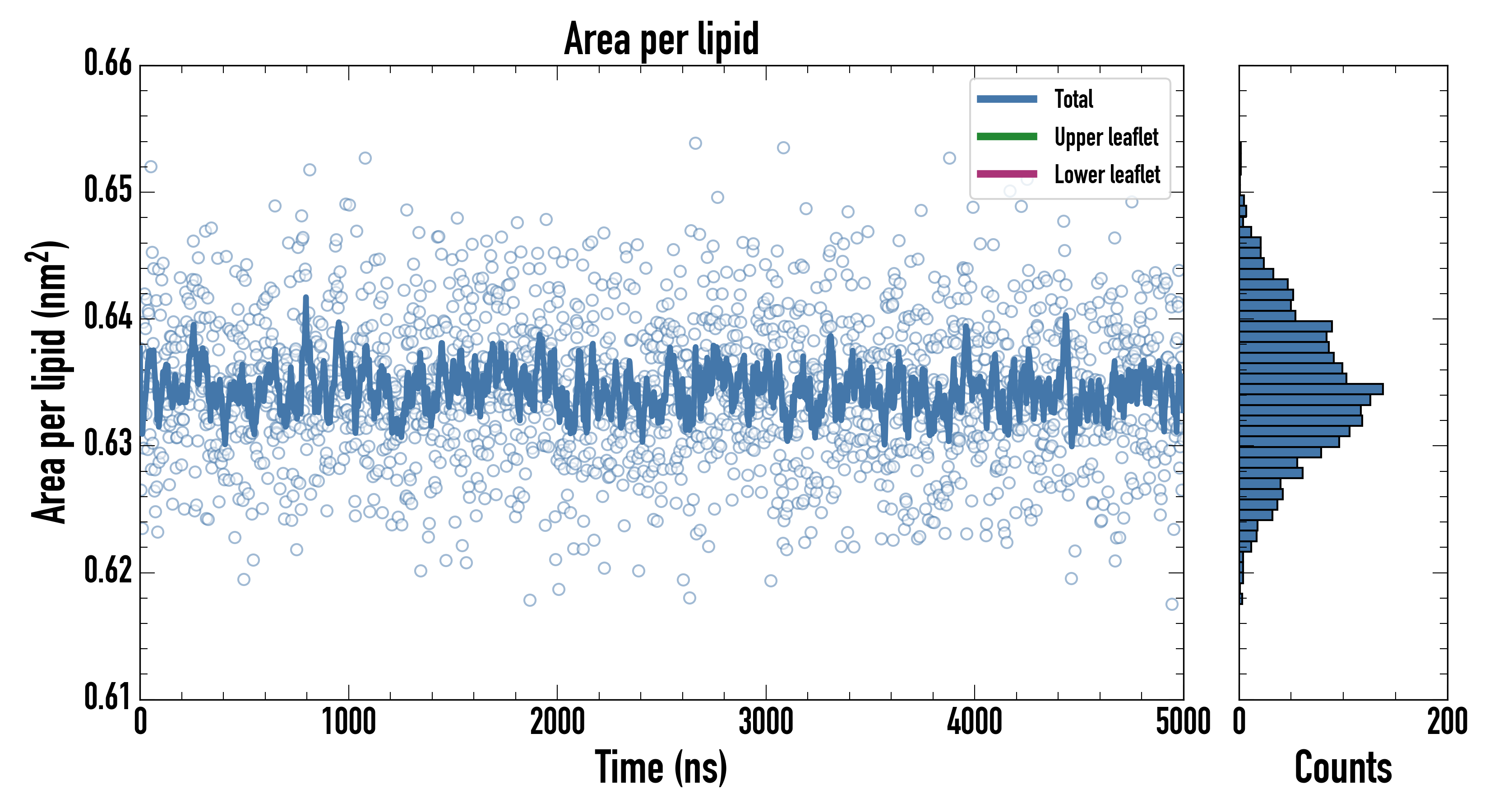 Upper leaflet (nm2): 0.634225000 ± 0.000829185