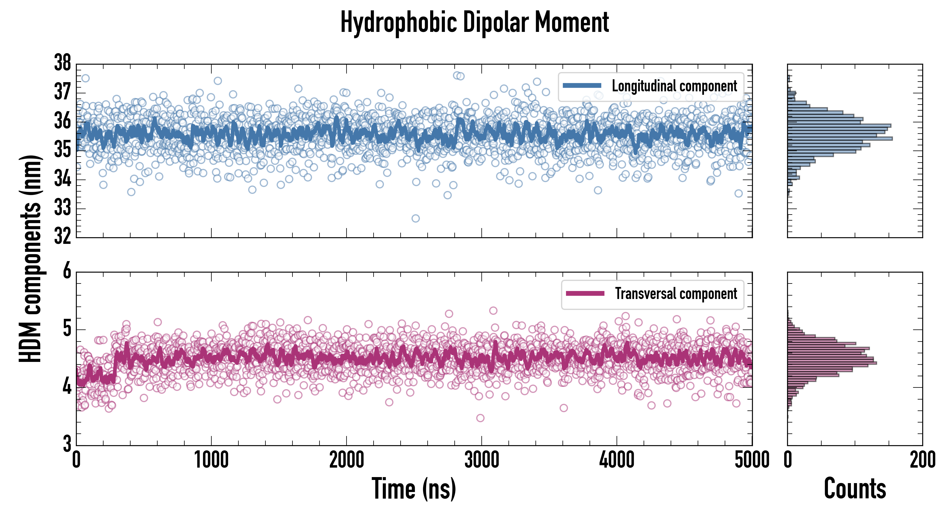 Longitudinal (e nm): 1.61 Transversal (e nm): 0.28 Hydrophobic Dipolar Moment (nm): 37.5