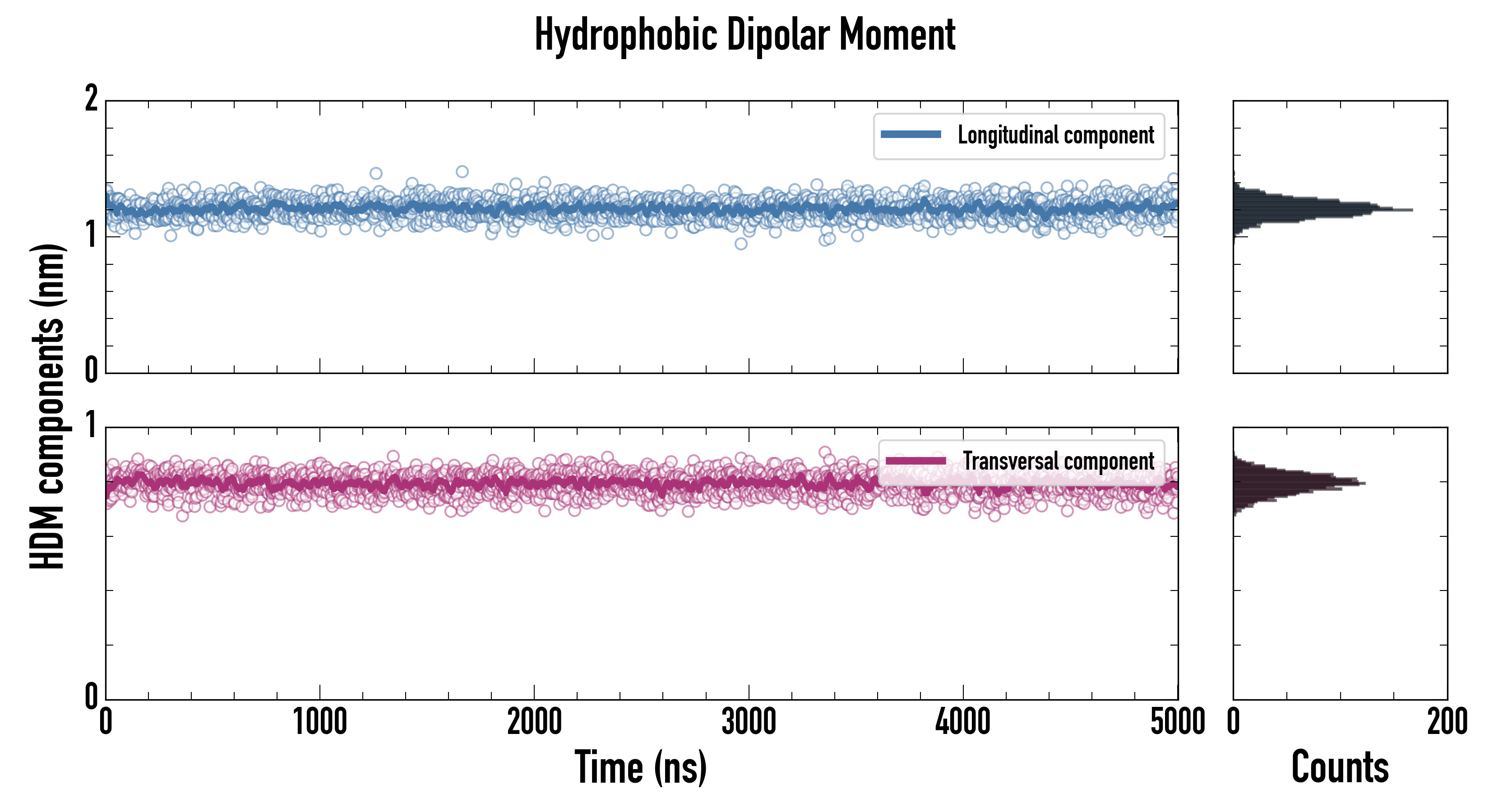 Longitudinal (e nm): 1.2 Transversal (e nm): 0.68 Hydrophobic Dipolar Moment (nm): 1.34