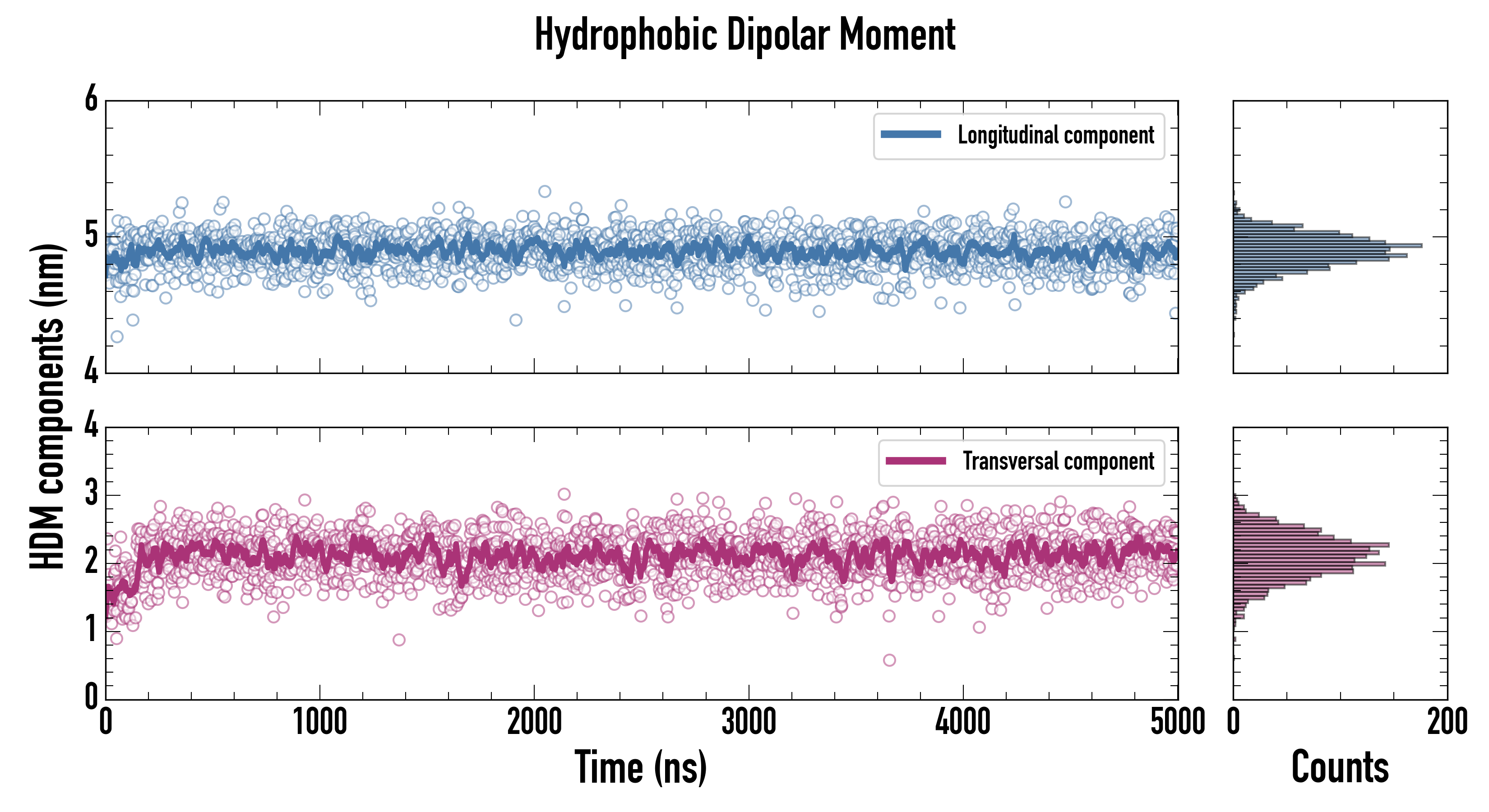 Longitudinal (e nm): 6.68 Transversal (e nm): 0.46 Hydrophobic Dipolar Moment (nm): 5.18